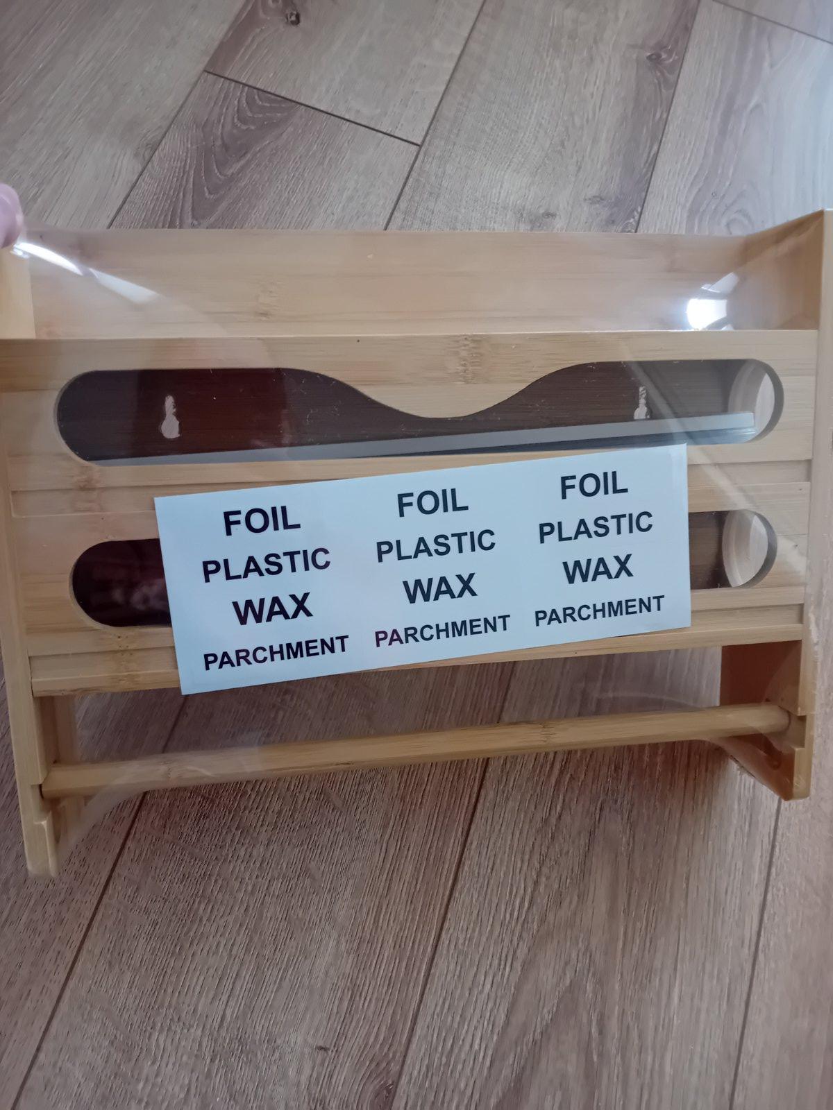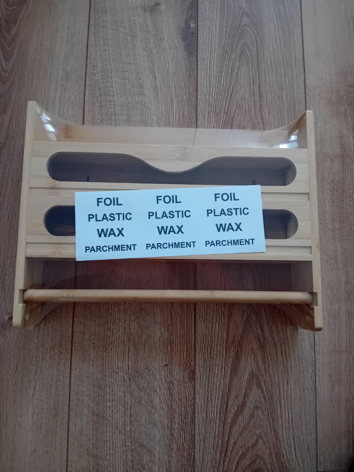 Bambusový držiak na papierové obrúsky, alobal a potravinovu fóliu. Nový. Cena 15€ + pošta