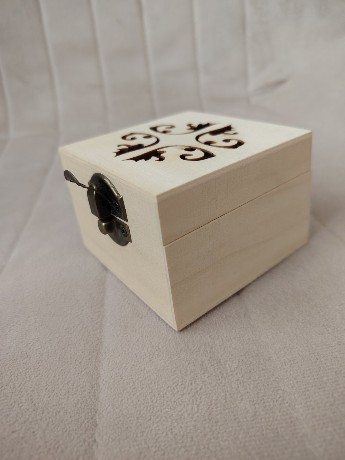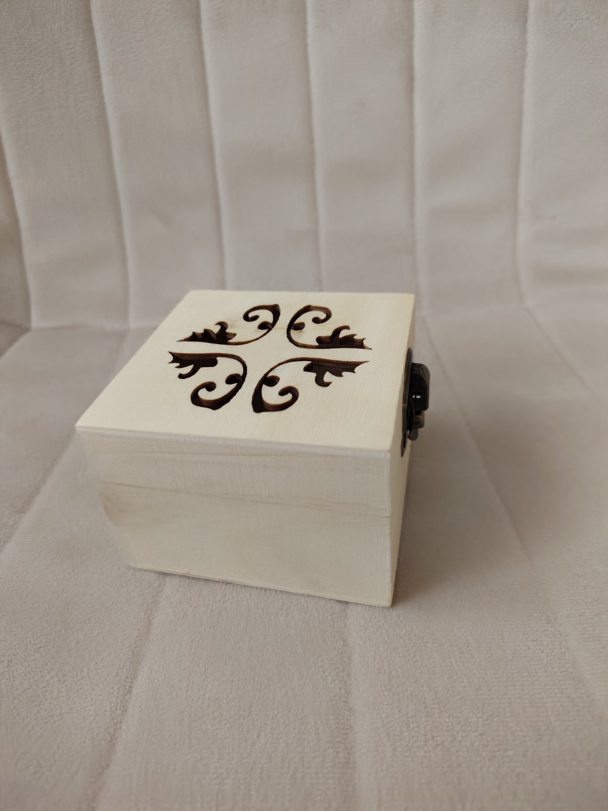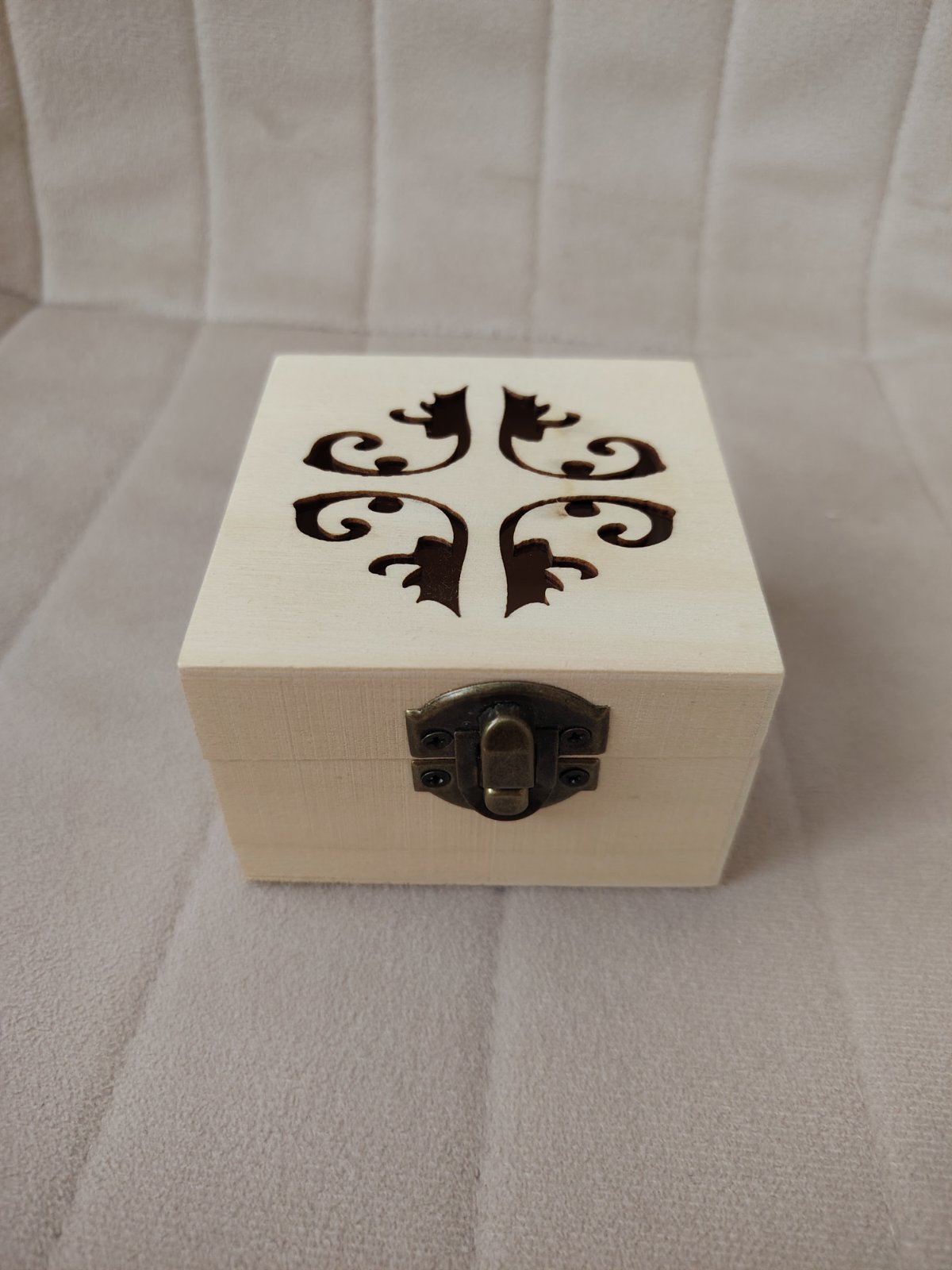 - drevená darčeková krabička so zatváraním a s ozdobným vyrezávaním na vrchu