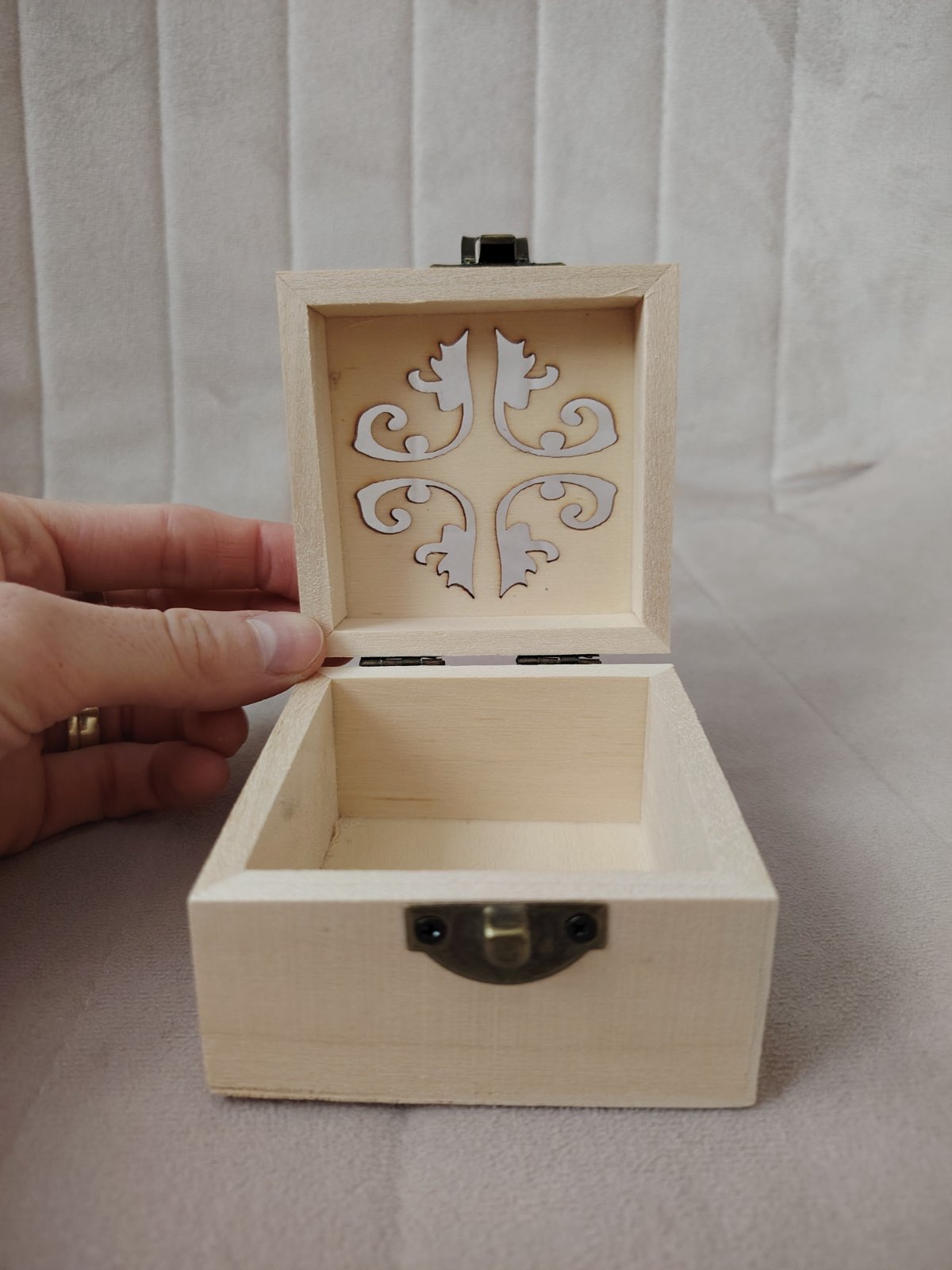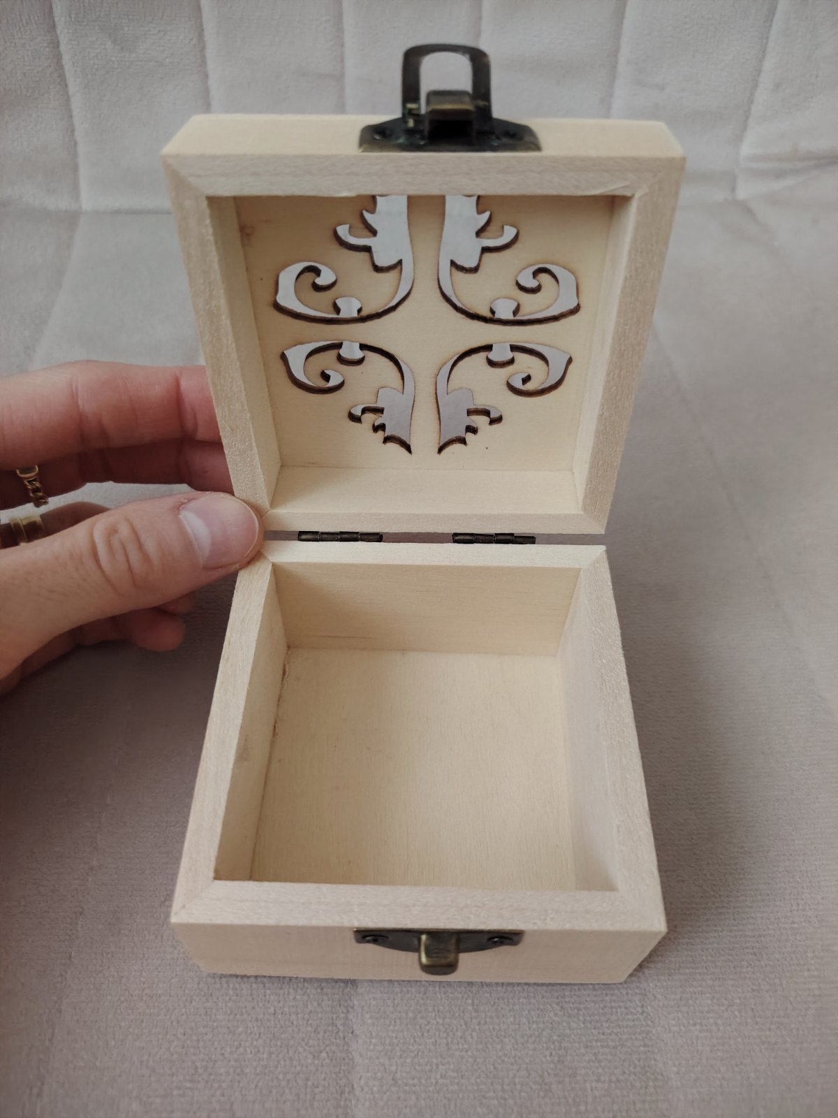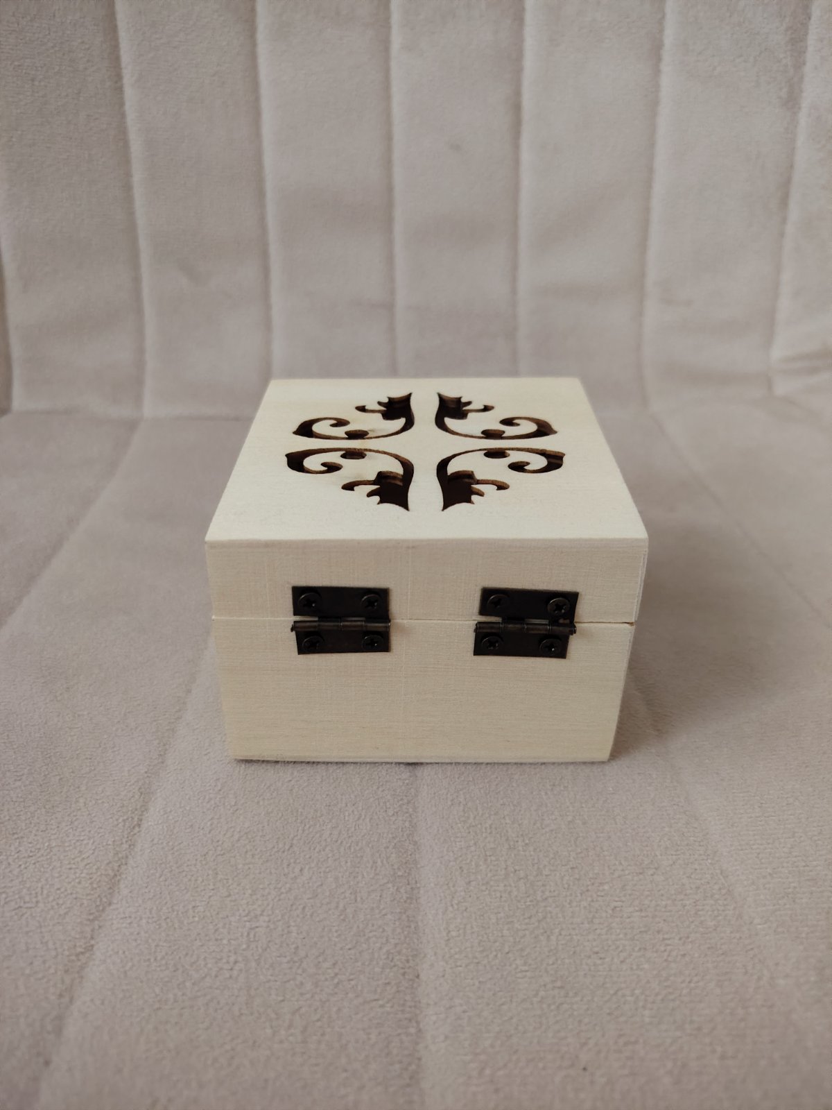 - drevená darčeková krabička so zatváraním a s ozdobným vyrezávaním na vrchu