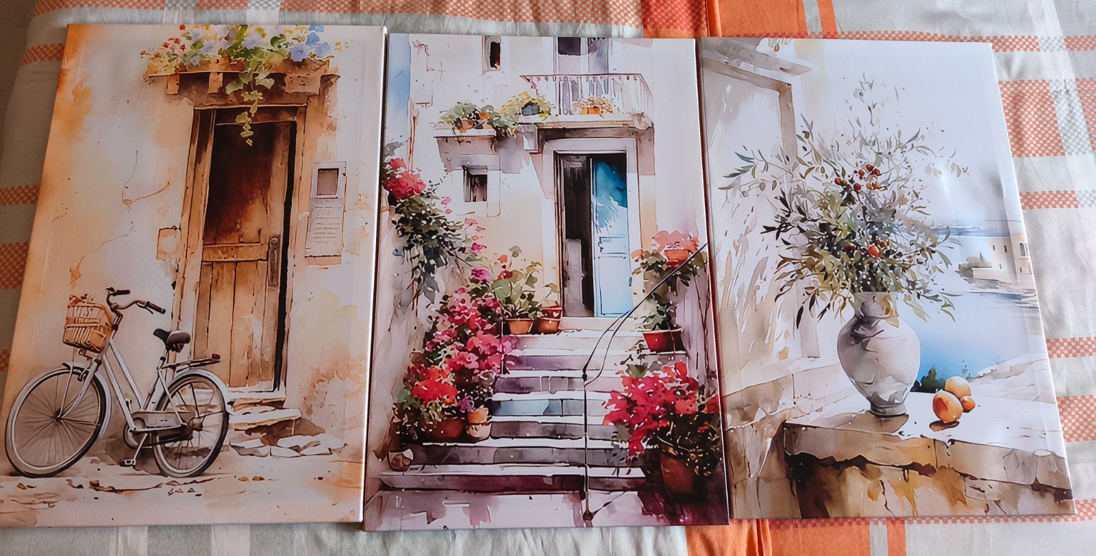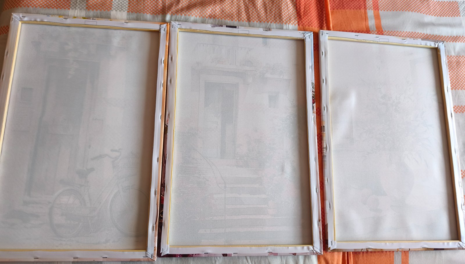 Rozmery každý obraz 39.5 x 59.5. Najlepšie spolu. Obrazy sú na drevených rámoch.