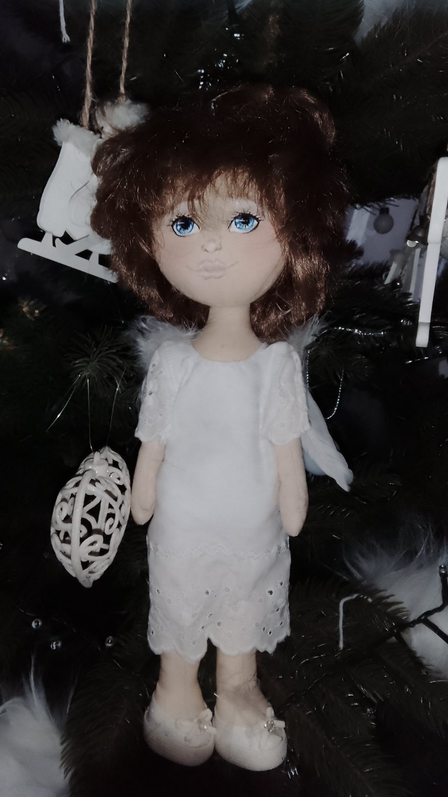 Rucne sita babika anjel.vyska 32 cm.