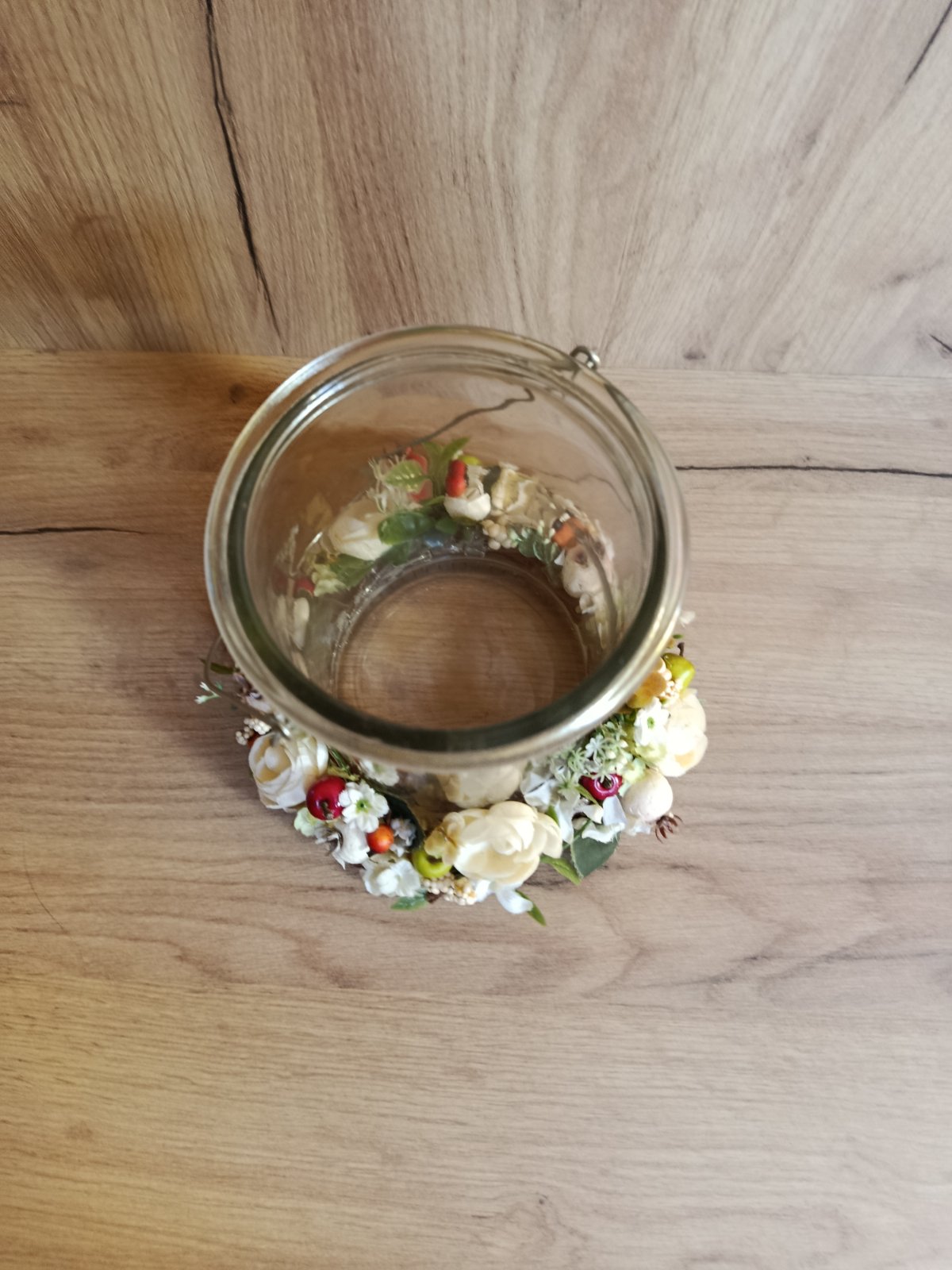 Lampáš s kvetinovým venčekom v dolnej časti, výška. 17 cm ,priemer 12 cm