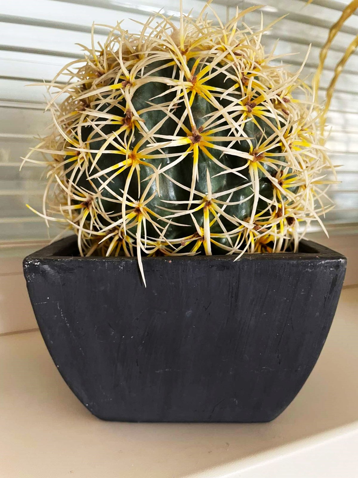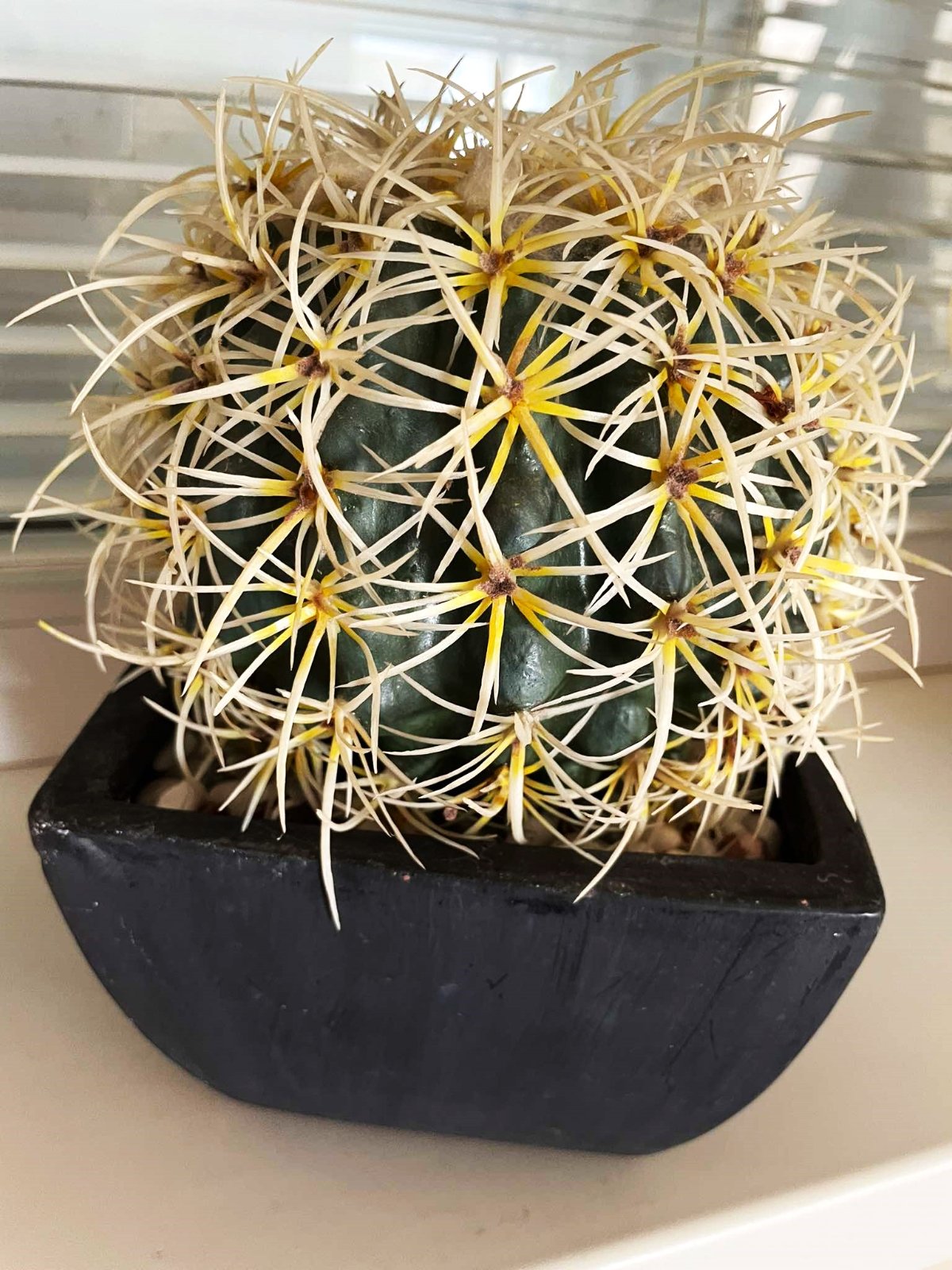 krásny solitér v kameninovom naturálnom črepe,v top stave,bol iba vystavený,verne kopíruje reálny kaktus,črep = 14 x 9 cm, výška celkom 20 cm