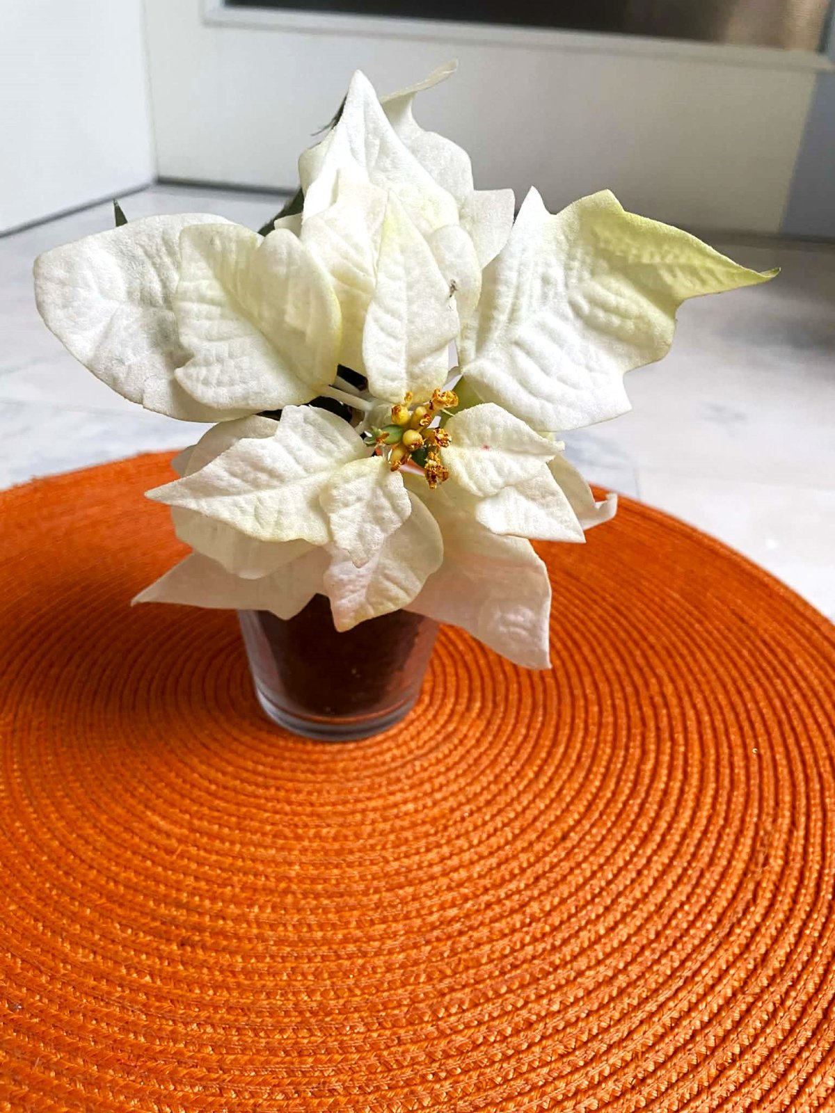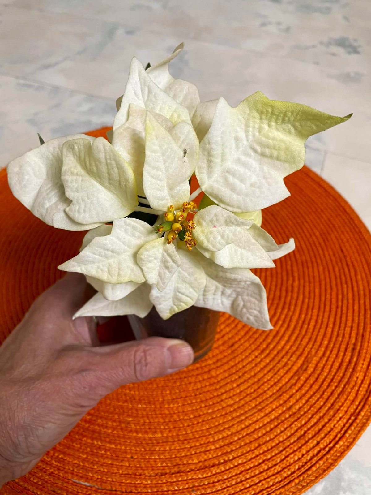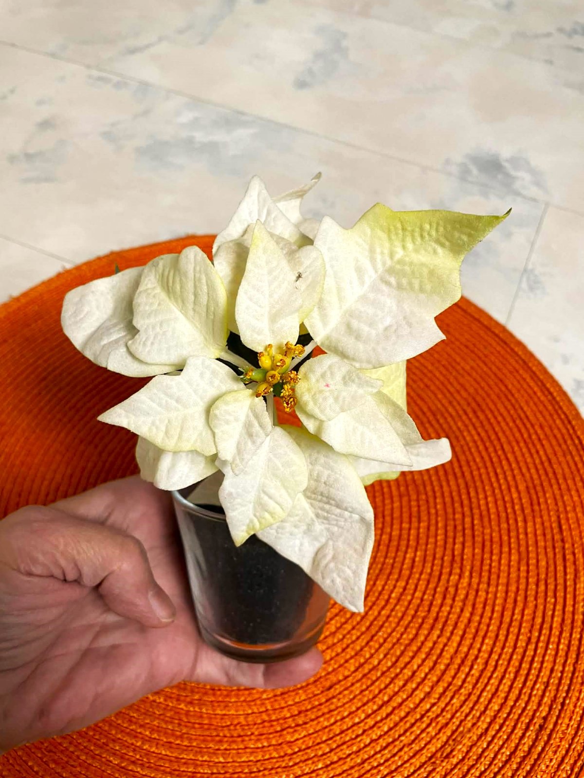 milá vkusná dekorácia mini vianočnej ruže v priesvitnom obale,použitá 1 Vianoce , v top stave, 20 x 14 cm,farba kvetu je jemne žíhaná - smotanovo biela - jemne do žltej nádych