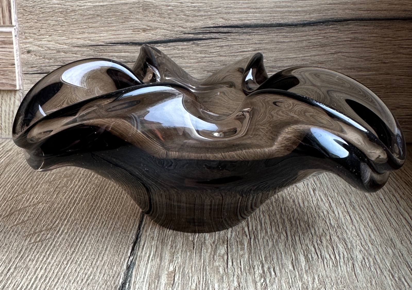 ❤️☘️Predám ručne tvarovanú sklenenú misu – dymové sklo, 60s/70s štýl.