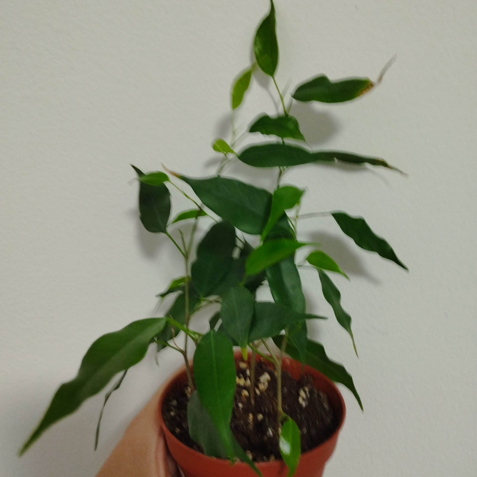 Mladá rastlinka, fikus benjamina, izbový kvet.