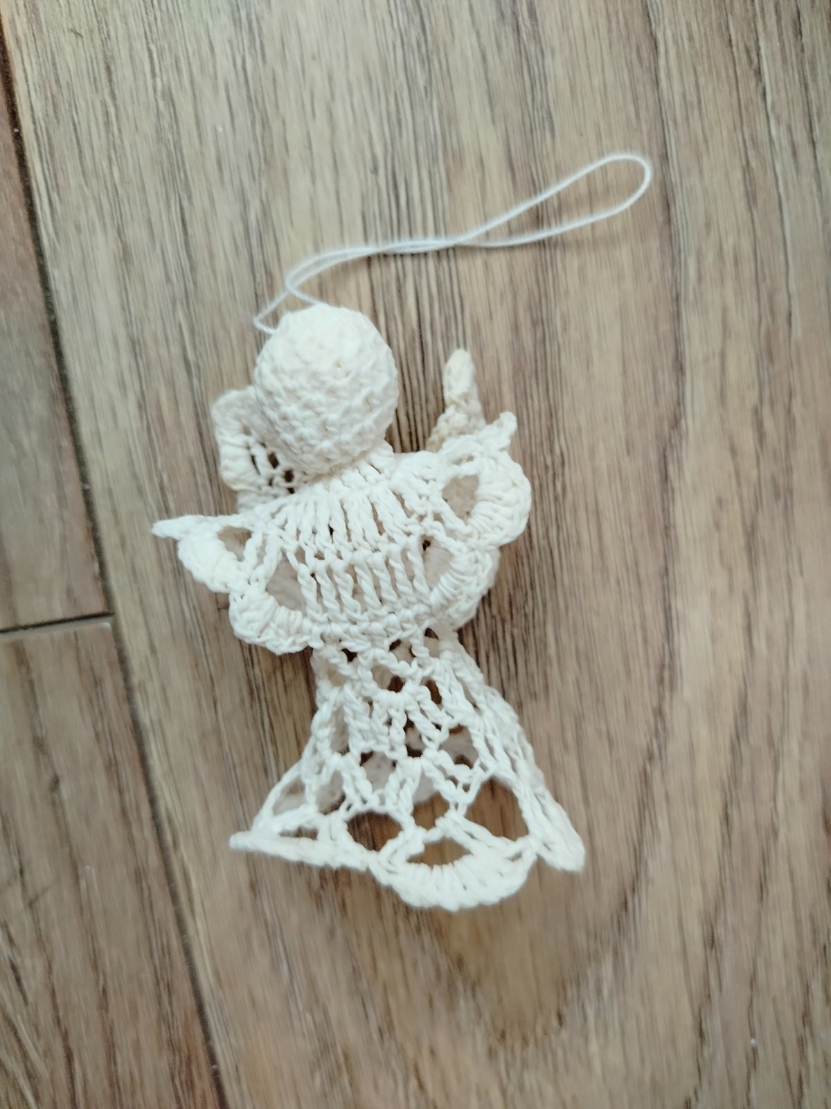 Predám háčkovanu ozdobu na stromček v tvare anjelika, dĺžka 8cm