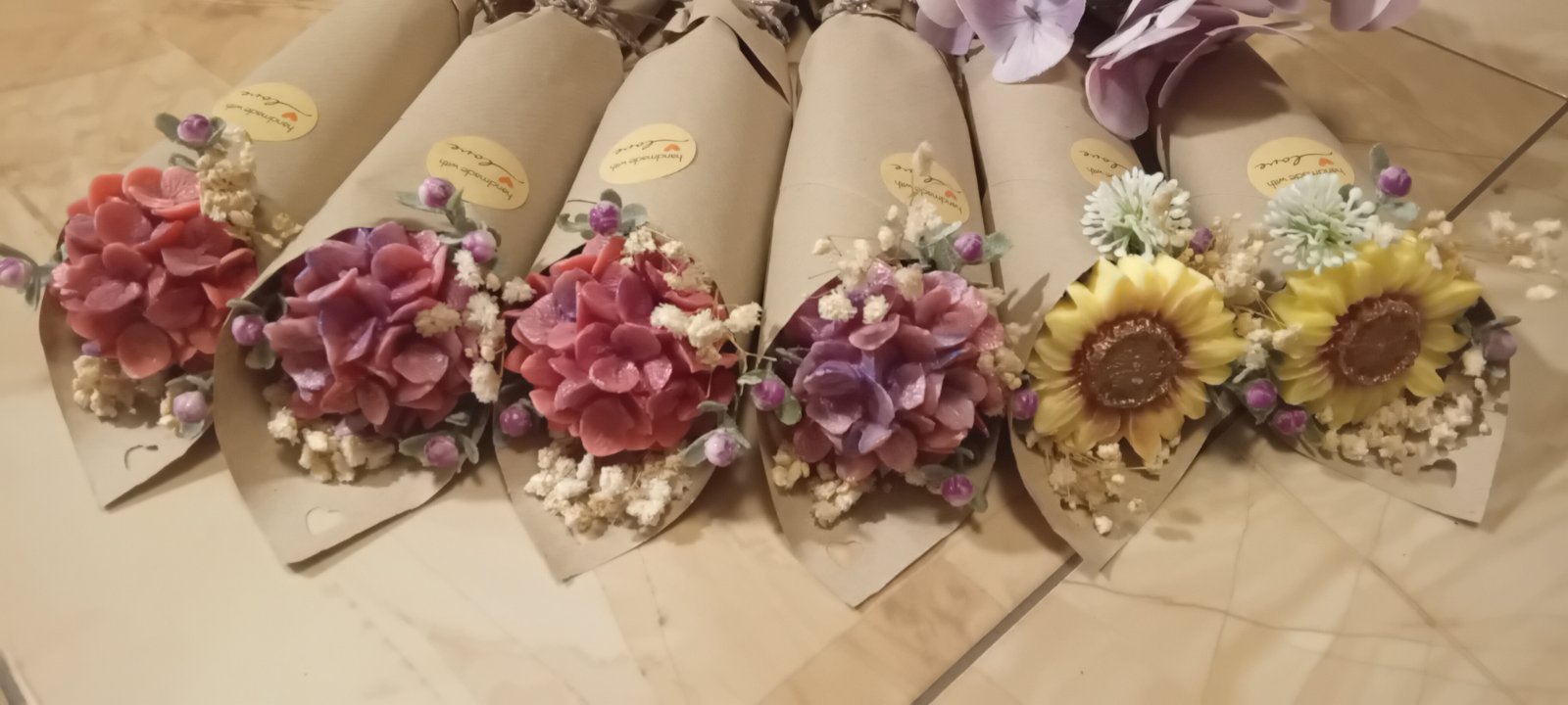 Ponúkam ,, handmade,, mydlové kytičky, dekorácie, postavičky na rôzne príležitosti ( jubileum, darček pre svadobných hostí, darček pre detičky do škôlky - napr.v podobe mydlového macka, srdiečka,... k výročiu, k Vianociam... podľa Vašich požiadaviek.