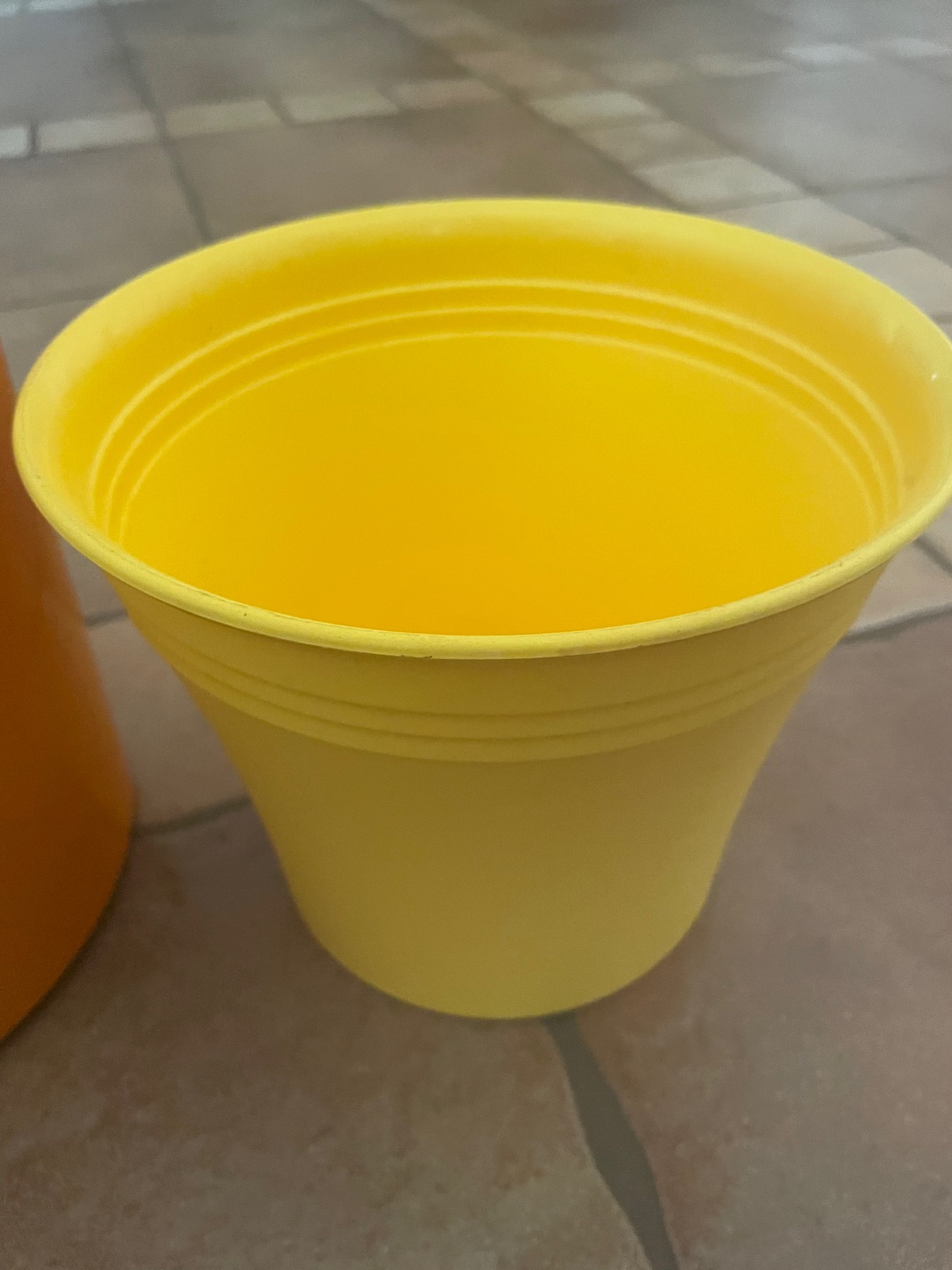 Pekny použitý stav. Oranžový keramický a žltý plastový zdarma. Vyska 17cm, priemer 19cm.