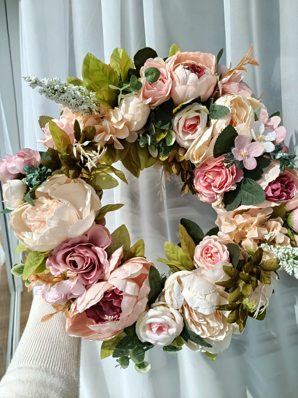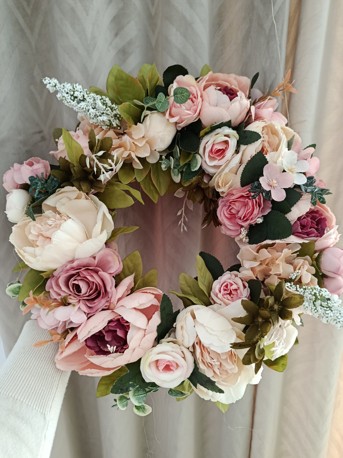 Krásny nový veniec z umelých kvetov