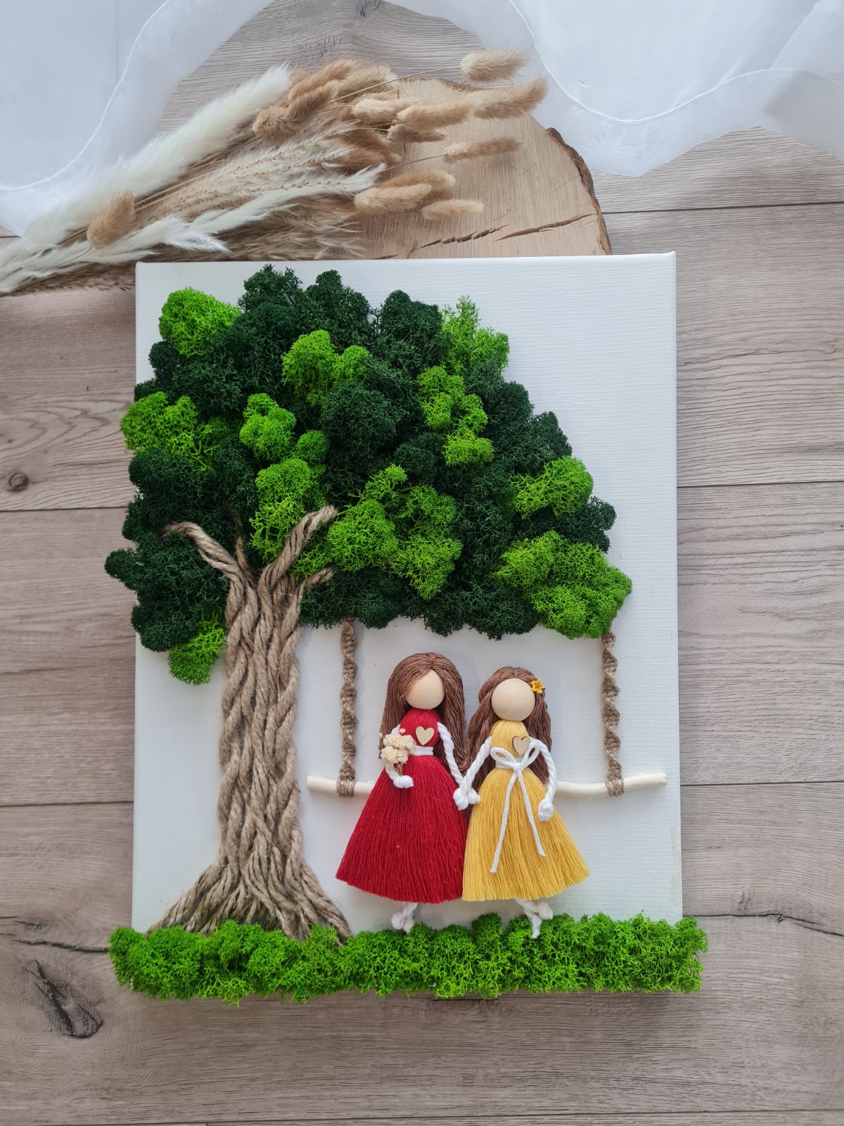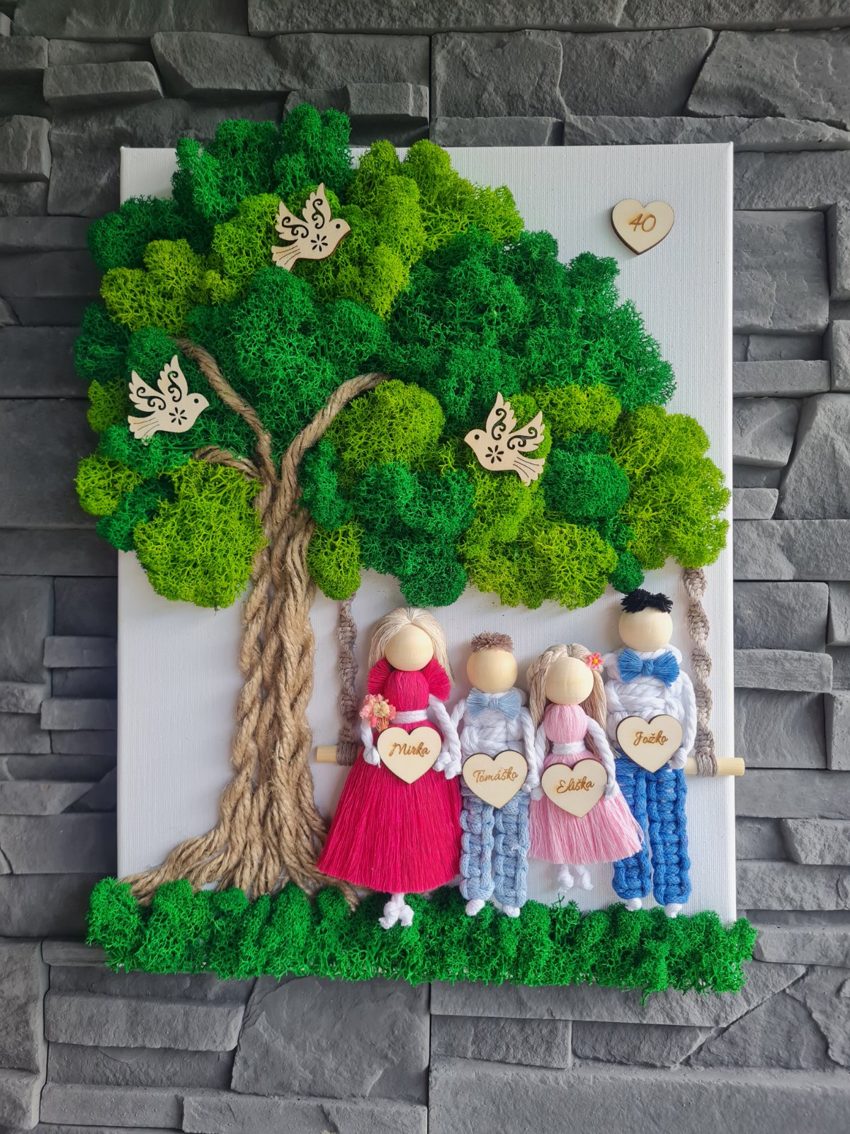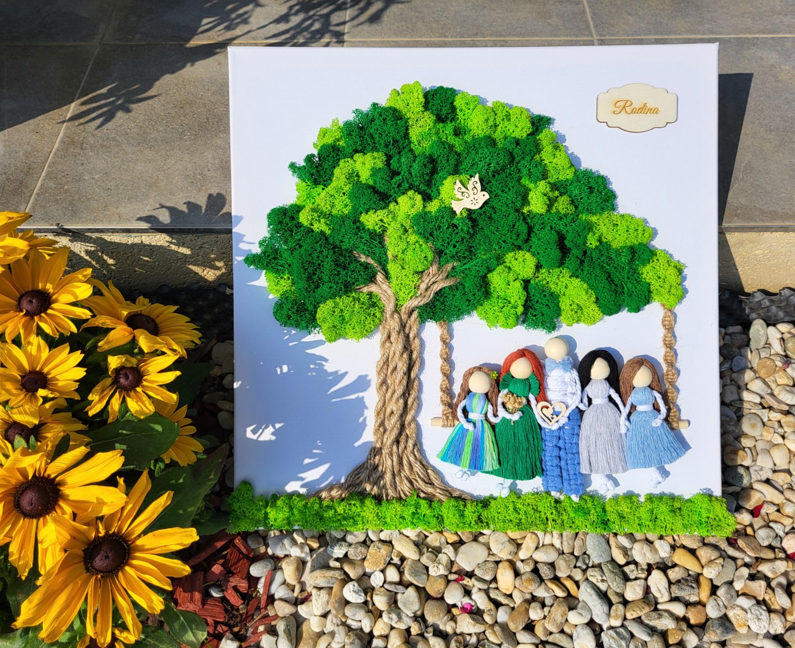 Machový obraz a makrame rodina