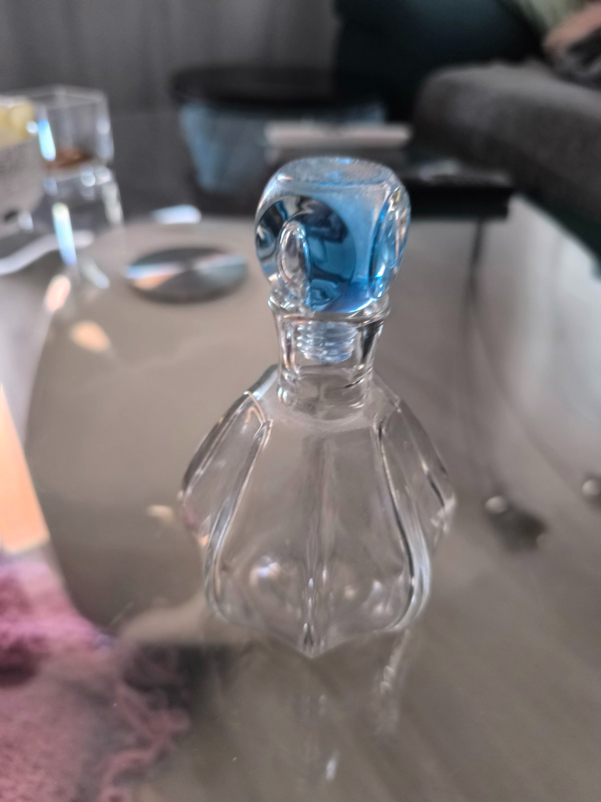 Nádoba sklenená s modrým vrchnáčikom - napr. na soľ do kúpeľa