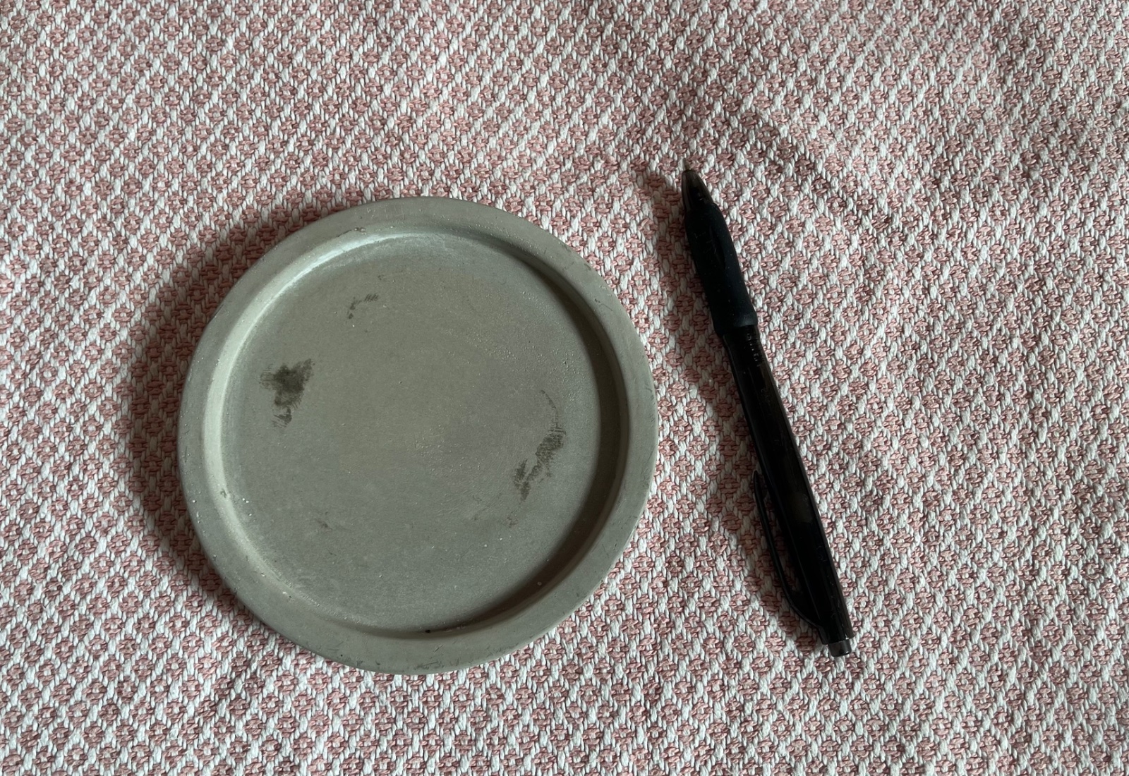 - párkrát použitý sivý/šedý svietnik, tácka, podložka