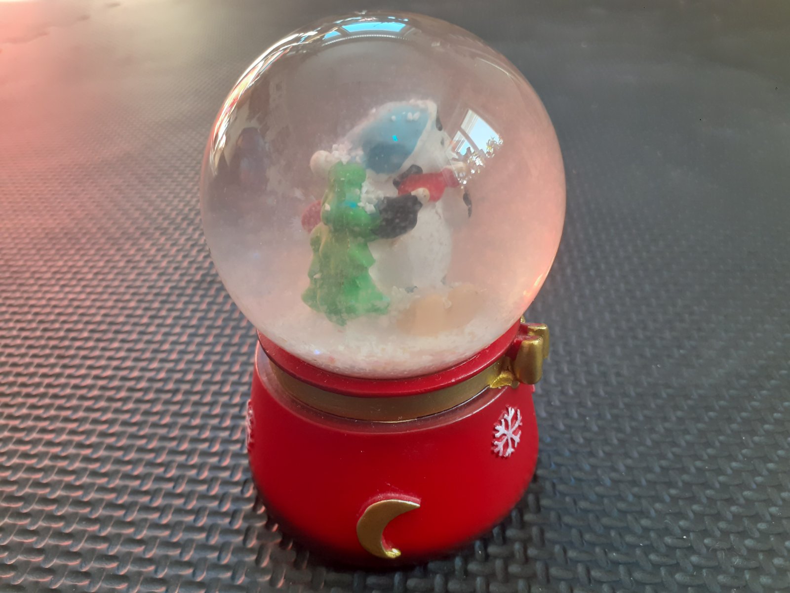 Darujem ku objednávke alebo za poštovné Snežítko - sklenenú snežnú guľu, do ktorej je možné vložiť zdola baterku a guľa vie svietiť ako malá nočná lampička. Vo vnútri je snehuliačik so stromčekom.