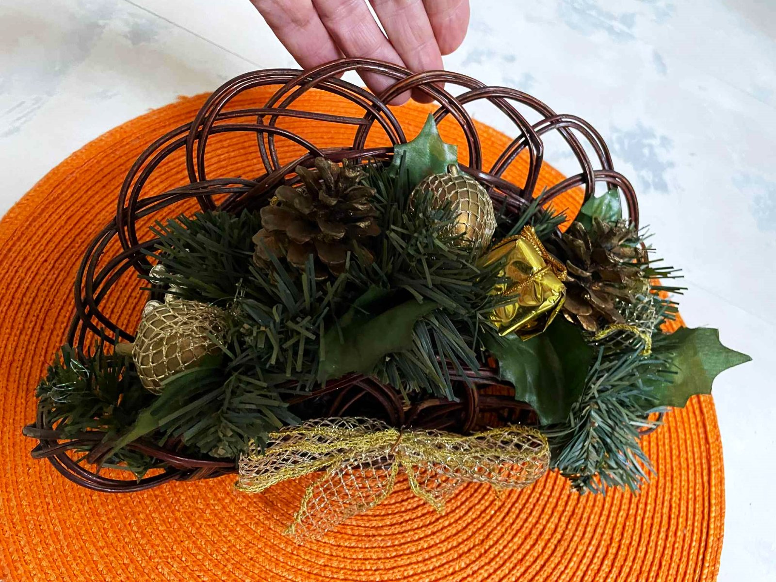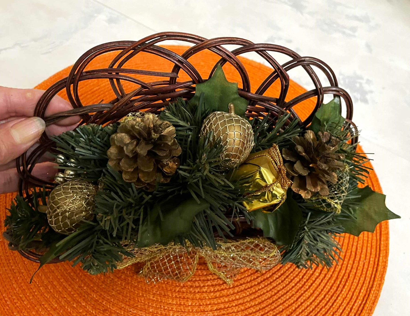 zaujímavá vianočná dekorácia - nevyčačkaná a netuctová,používaná 1 Vianoce, upevnená na prútenom základe,krásna naturálna, dá sa zavesiť na dvere ale aj na kozub alebo inde - super dekorácia