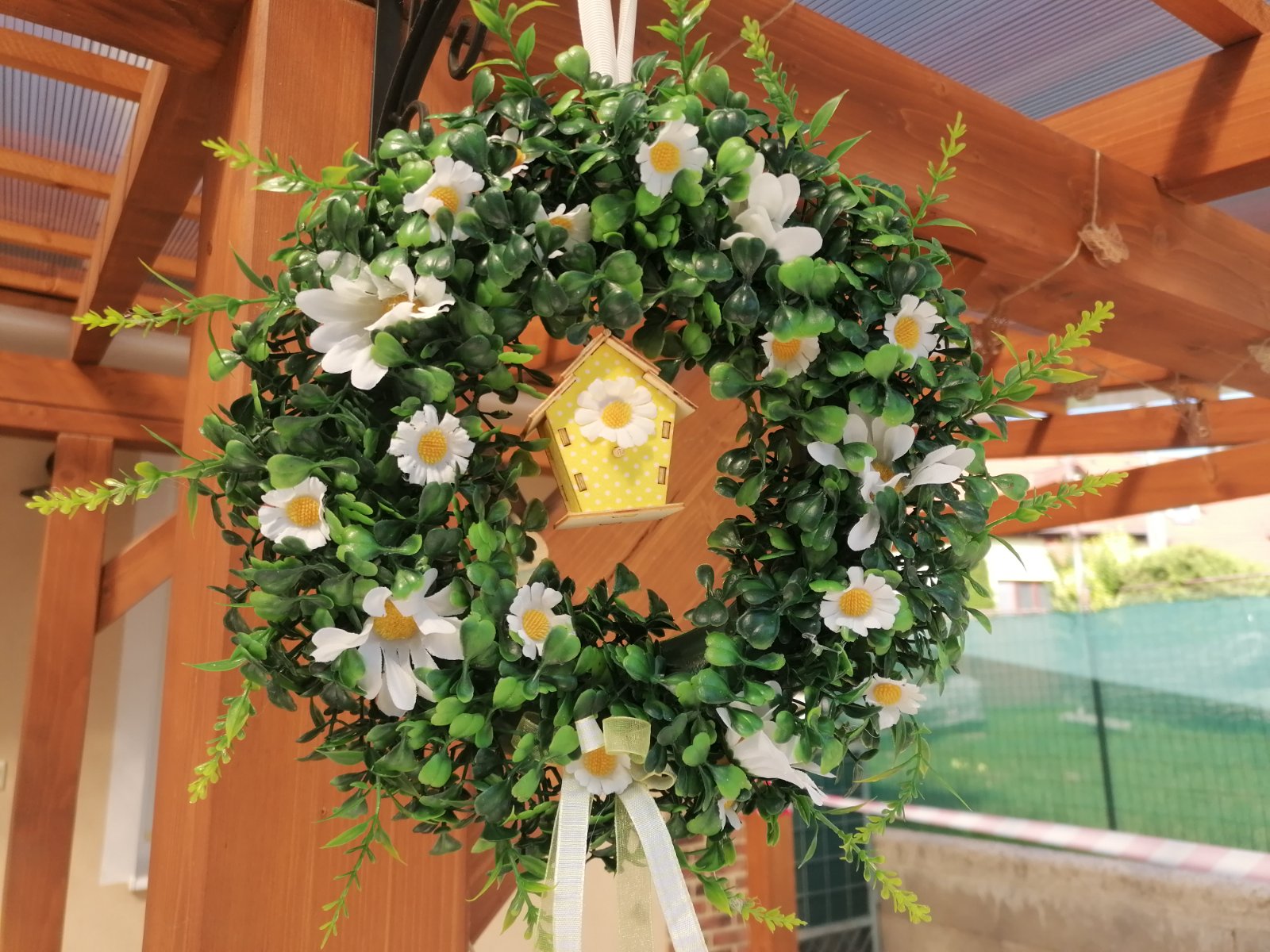Celoročný venček na dvere s milou dekoráciou. Vonkajší priemer je cca 25 cm.