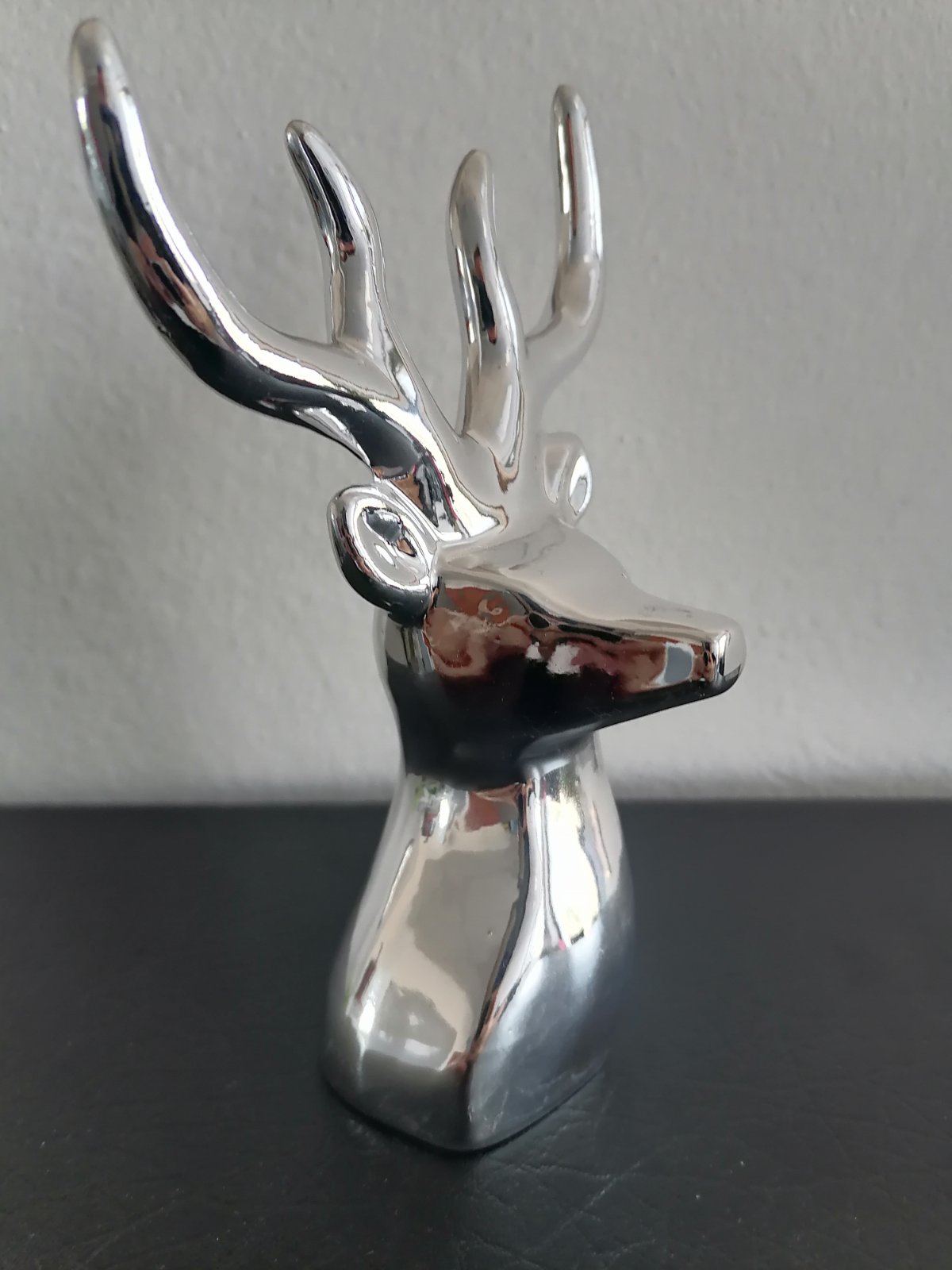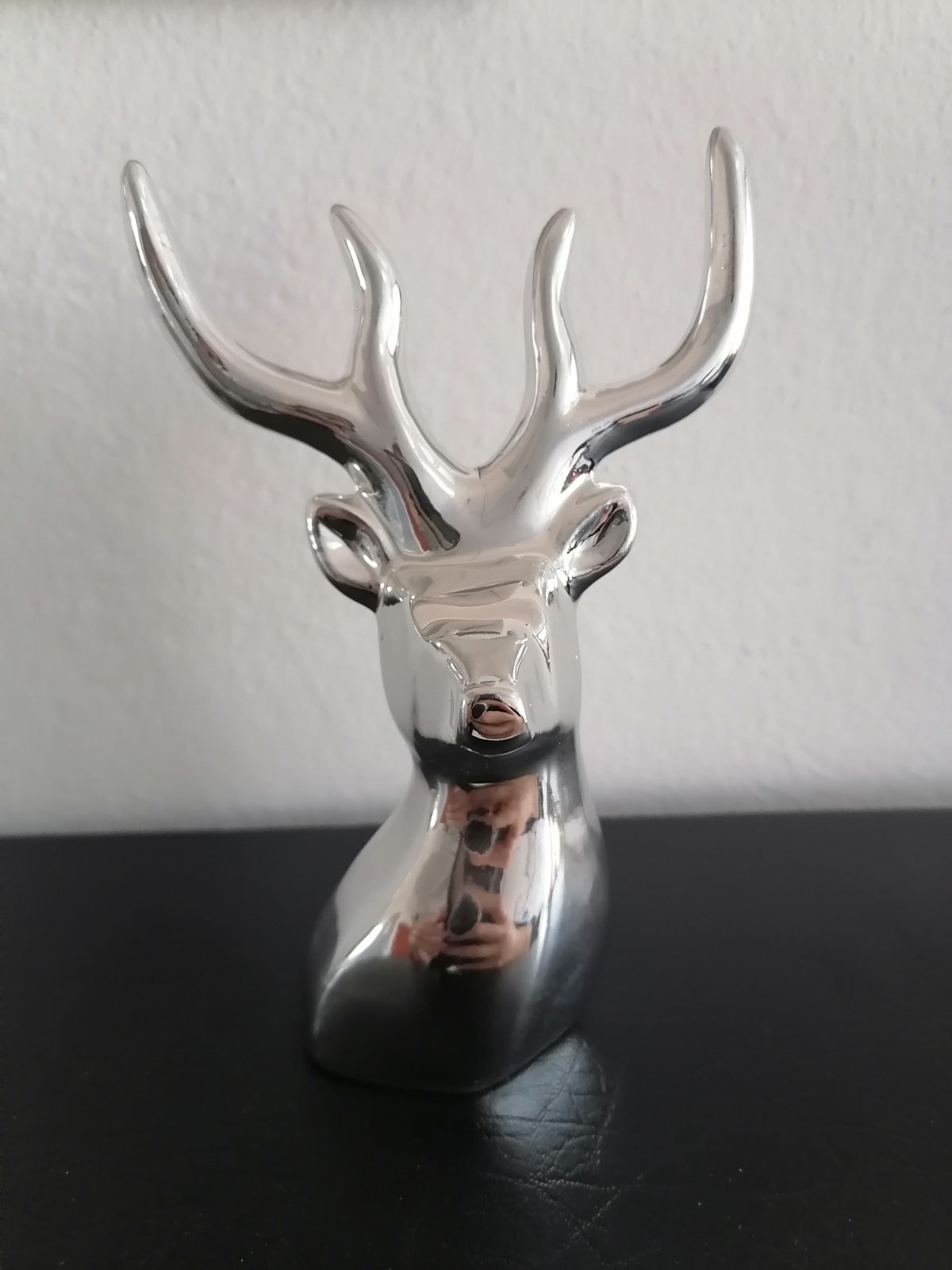 Predám porcelánovú sošku - hlava jeleňa, strieborná farba, bezvadný stav. Výška cca 17 cm. Bezvadný používaný stav. Osobný odber možný v BA.