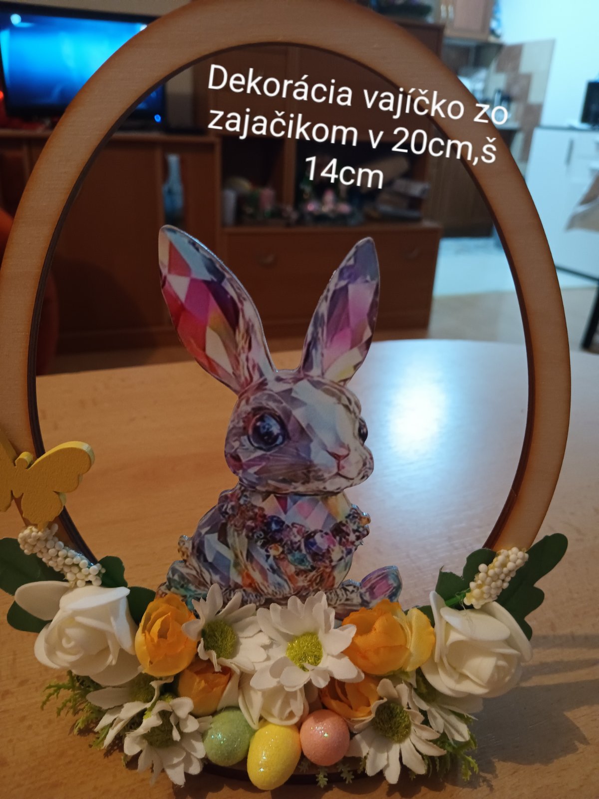 Veľkonočná dekorácia na stôl zajačik vo vajíčku..popis na fotke Cena 10e +poštovny príplatok ako krehké 6e..Platba vopred na účet..ZIADNA DOBIERKA