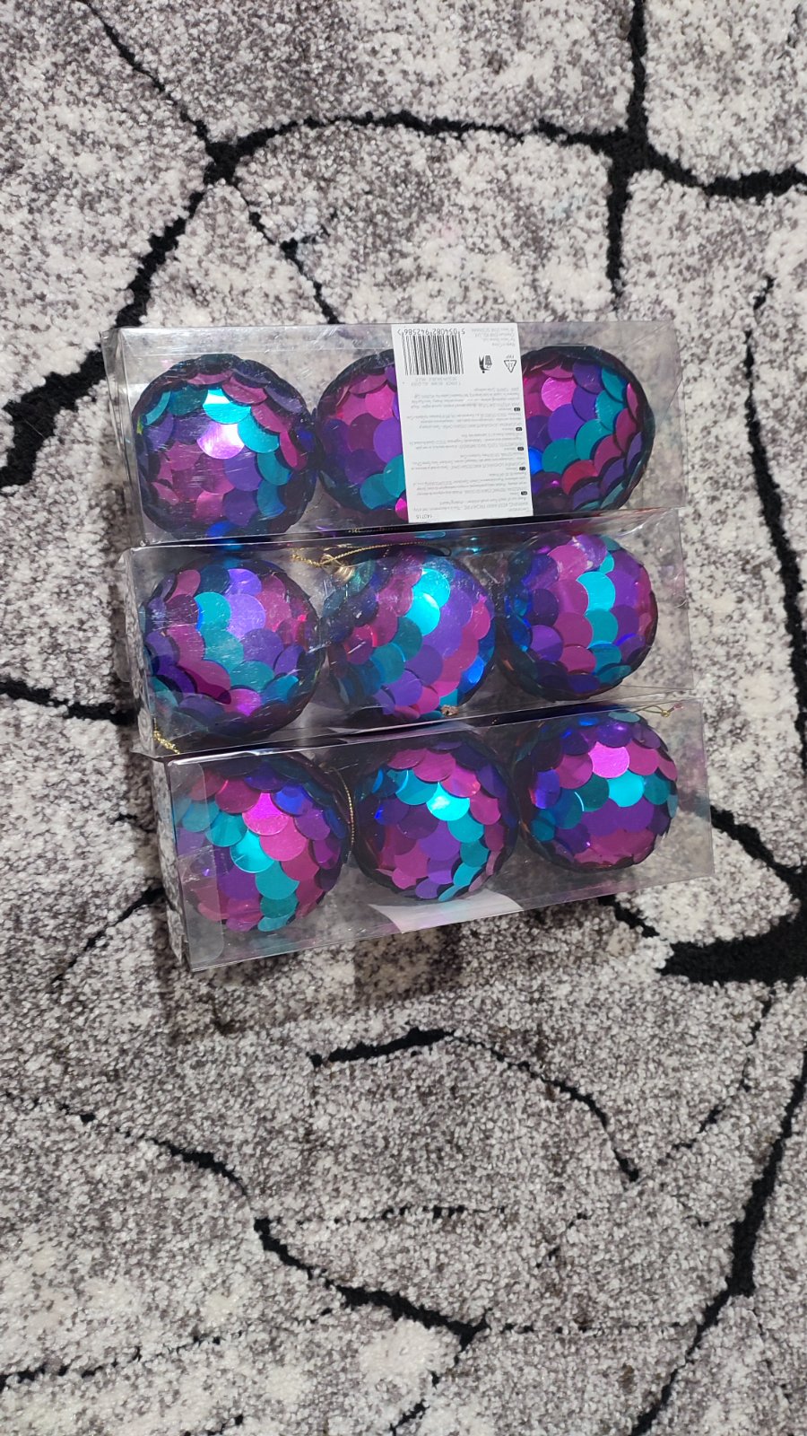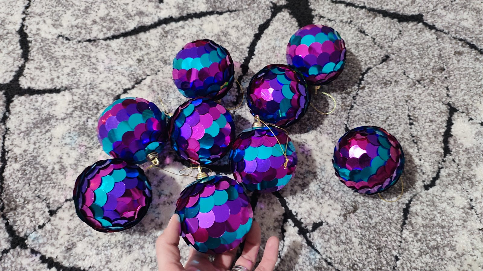 Nepouzite vianočné gule,krasne trblietave, len u nas nemaju vyuzitie kedze nikdy nemame farebný vianočný stromcek.