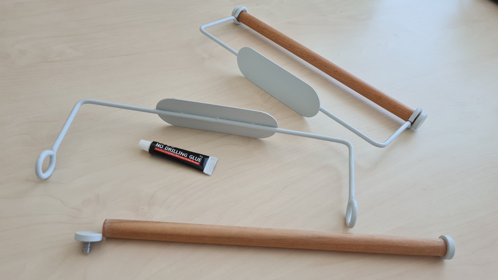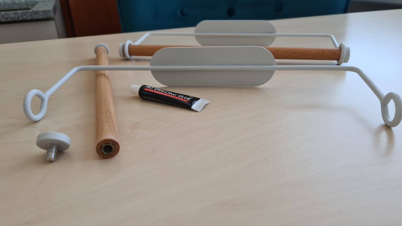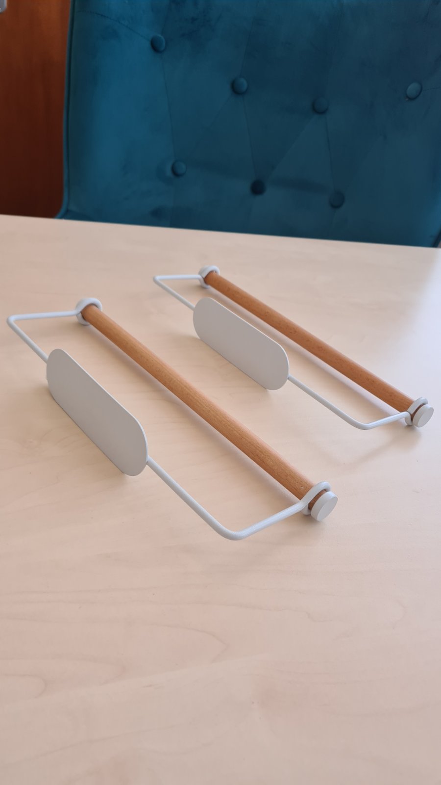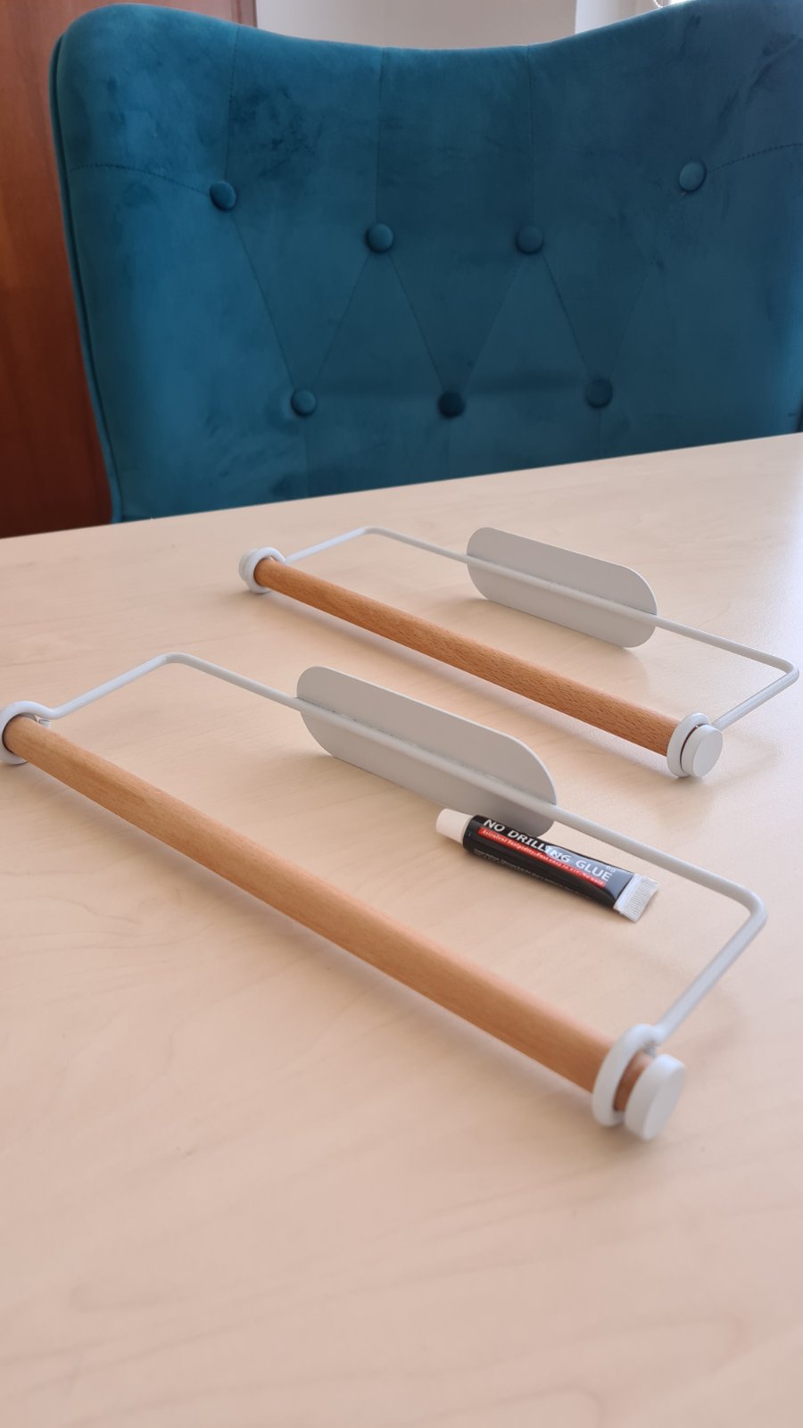Predám nové vešiaky, vhodné na uteráky do kúpeľne alebo menší kotúč kuchynských utierok. Vešiaky sú dreveno-kovové a sú na nalepenie.