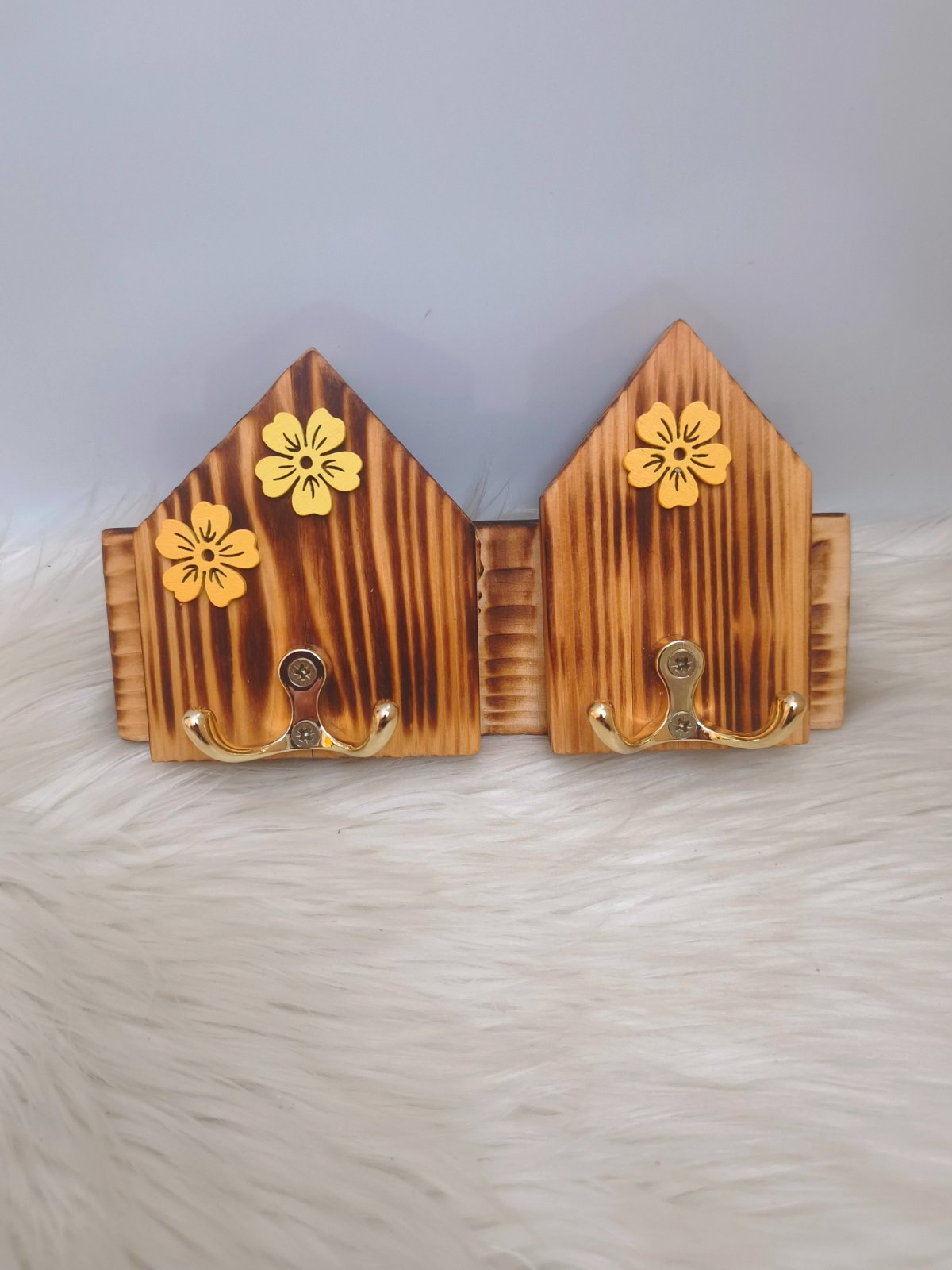 Drevený vešiak na kľúče, z opaľovaného dreva.