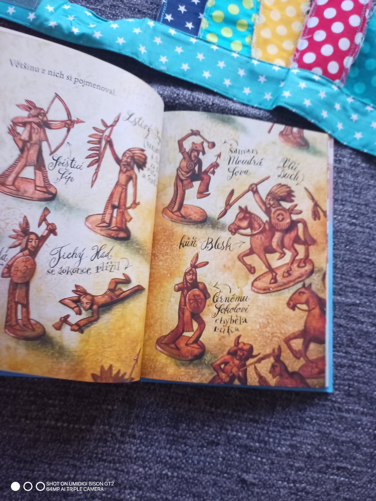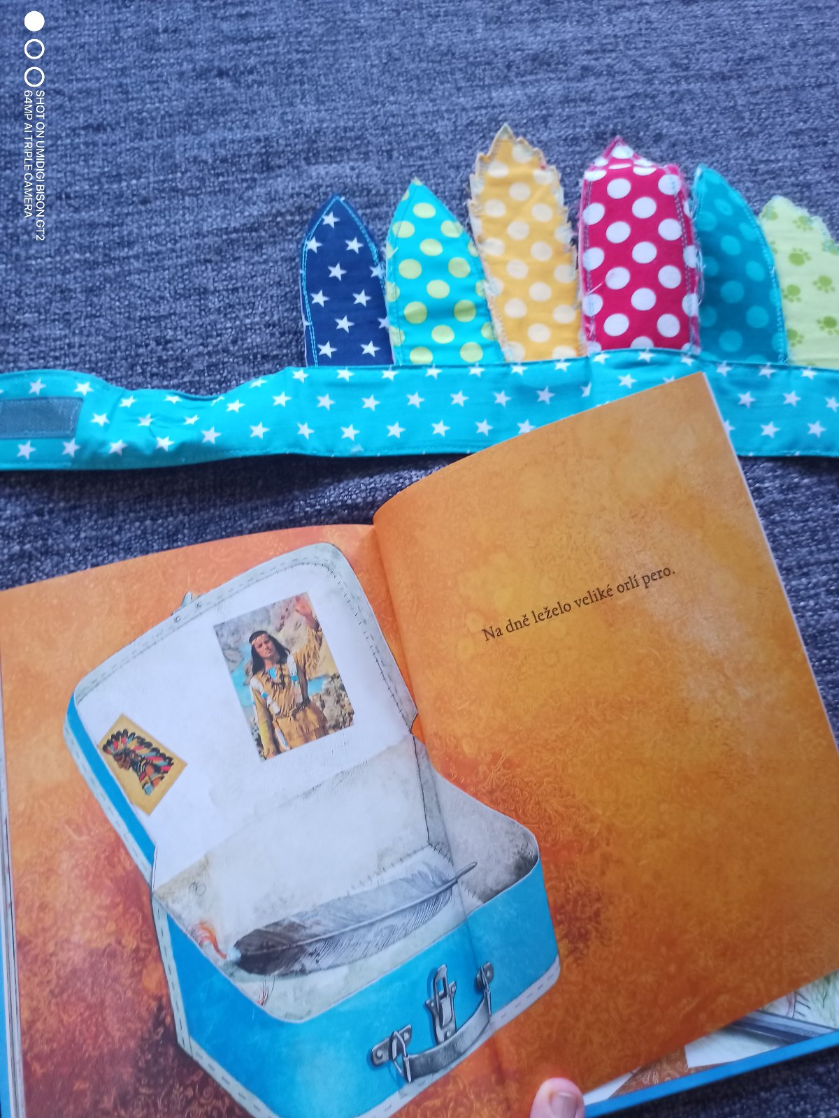 Jirka a indiáni. Krásne celostranové iustrácie P. Čecha. Indiánska čelenka šitá na objednávku, 100 % stav, vhodné ako darček