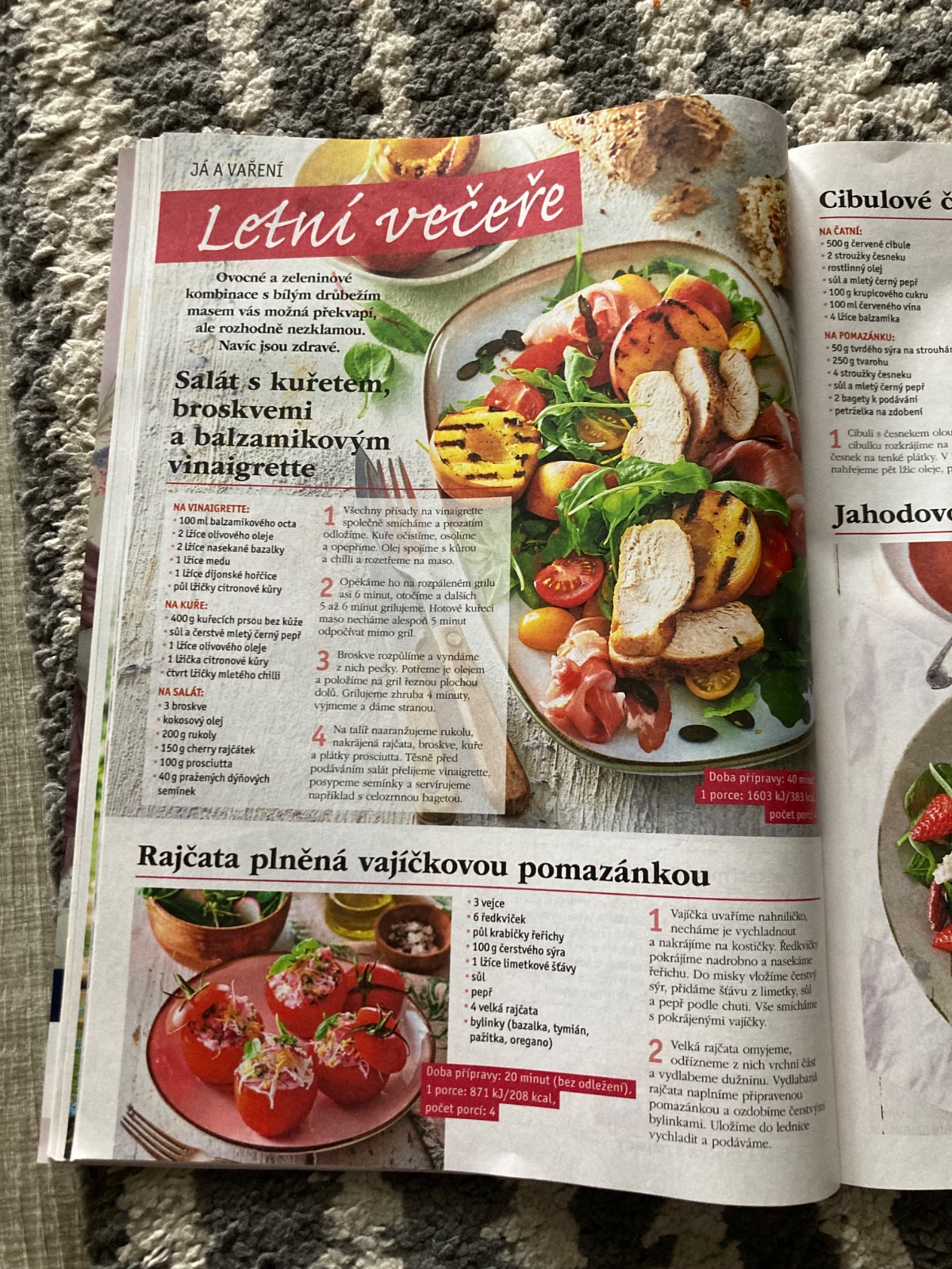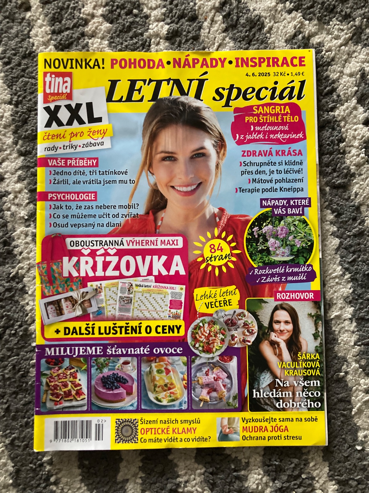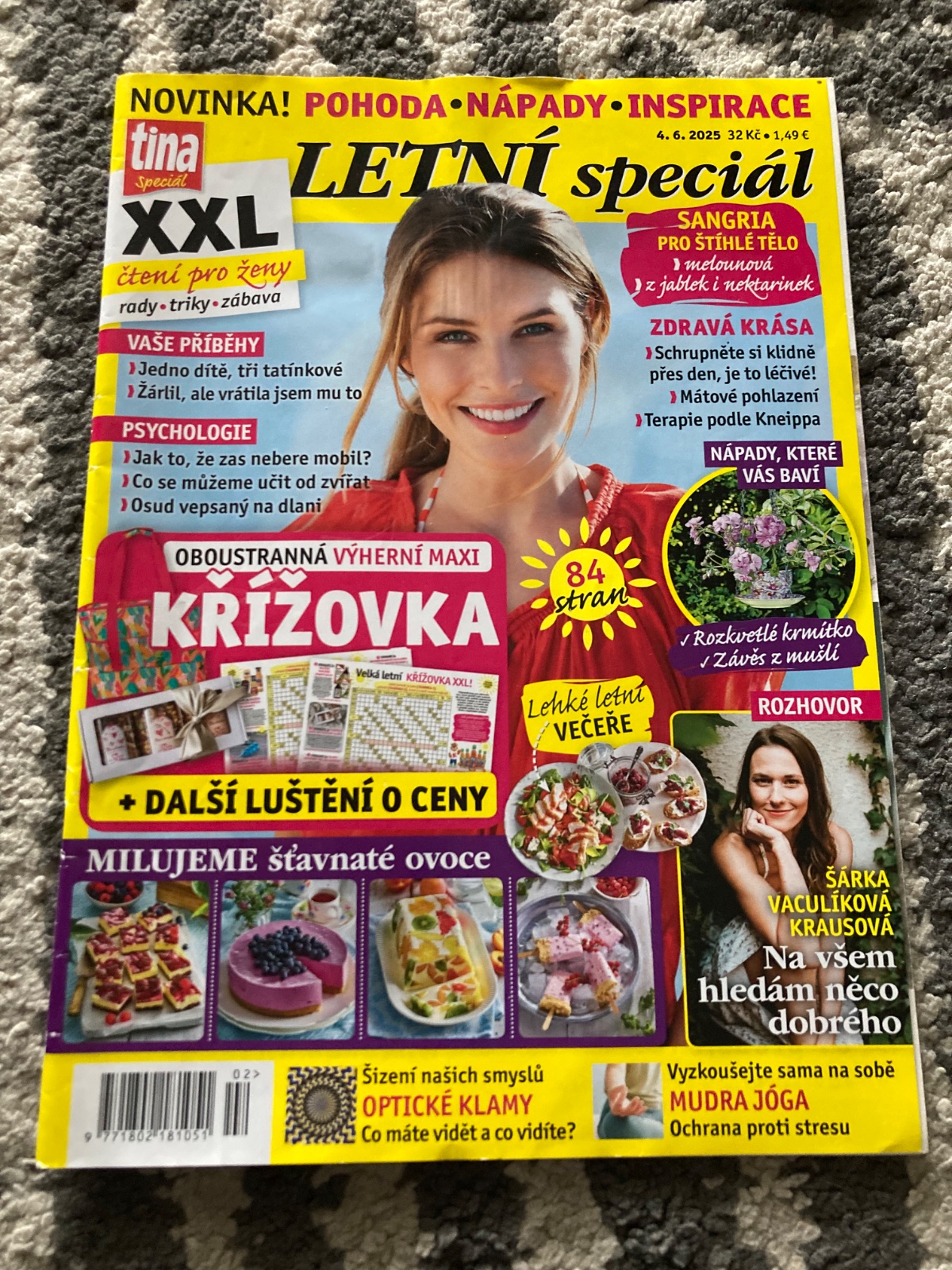 Na 84 stranách přináší pohodu, nápady a inspirace na dobu prázdnin a dovolených. Nabízí několik stran receptů, na kterých si smlsnete. Milujete ovoce? S námi zvládnete ty nej bublaniny, nepečené letní dortíky i zmrzliny nebo zavařeniny, džemy a želé. Jako bonus přidáváme Velké letní luštění, tedy vyndavací oboustrannou křížovku o skvělé ceny. Vše doplňují zajímavé příběhy ze života, kosmetické a módní tipy, rady pro zdraví i vnitřní klid a vyrovnanost. Dozvíte se, jak funguje a jak nás šálí lidský mozek, jak se zbavit bolestí zad, ale třeba i jak si vyrobit závěs z mušliček. O životních pravdách, osobních pocitech i názorech jsme si povídali s herečkou Šárkou Vaculíkovou Krausovou a hercem Petrem Vackem. Další luštěnky, ve kterých můžete vyhrát plážové tašky, luxusní kosmetiku a další jsou už jen třešinkou na dortu.