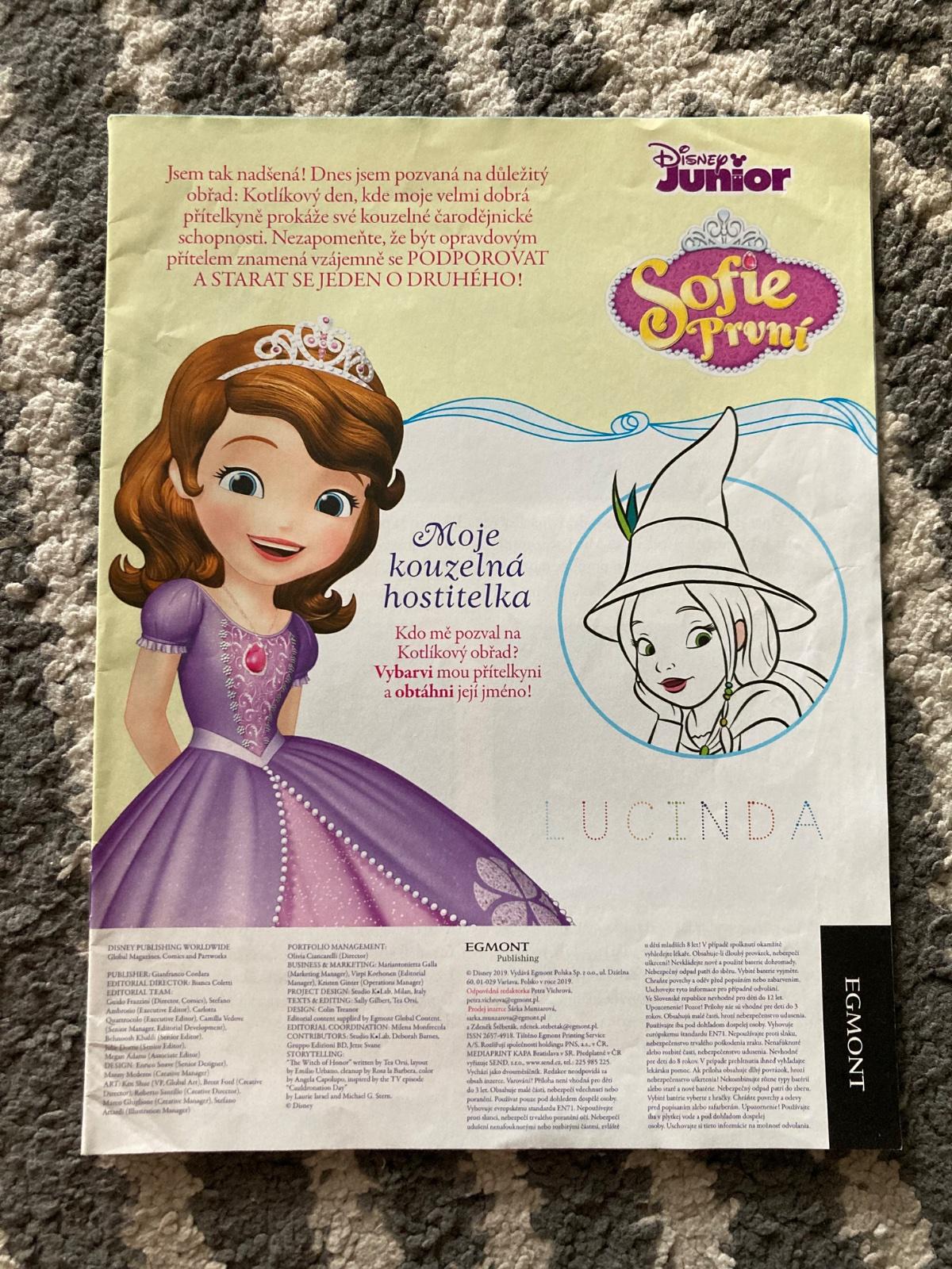 🎀 Tento magazín vznikl na motivy seriálu Disney Channel. V jeho hlavní roli vystupuje Sofie, nastávající princezna. Každá mladá čtenářka tak díky časopisu dostává příležitost nahlédnout do Sofiina kouzelného světa, a tak se také stát princeznou se srdcem na pravém místě. Sofie je odvážná, zvídavá a dobrodružná, ale také upřímná, poctivá a plná soucitu.