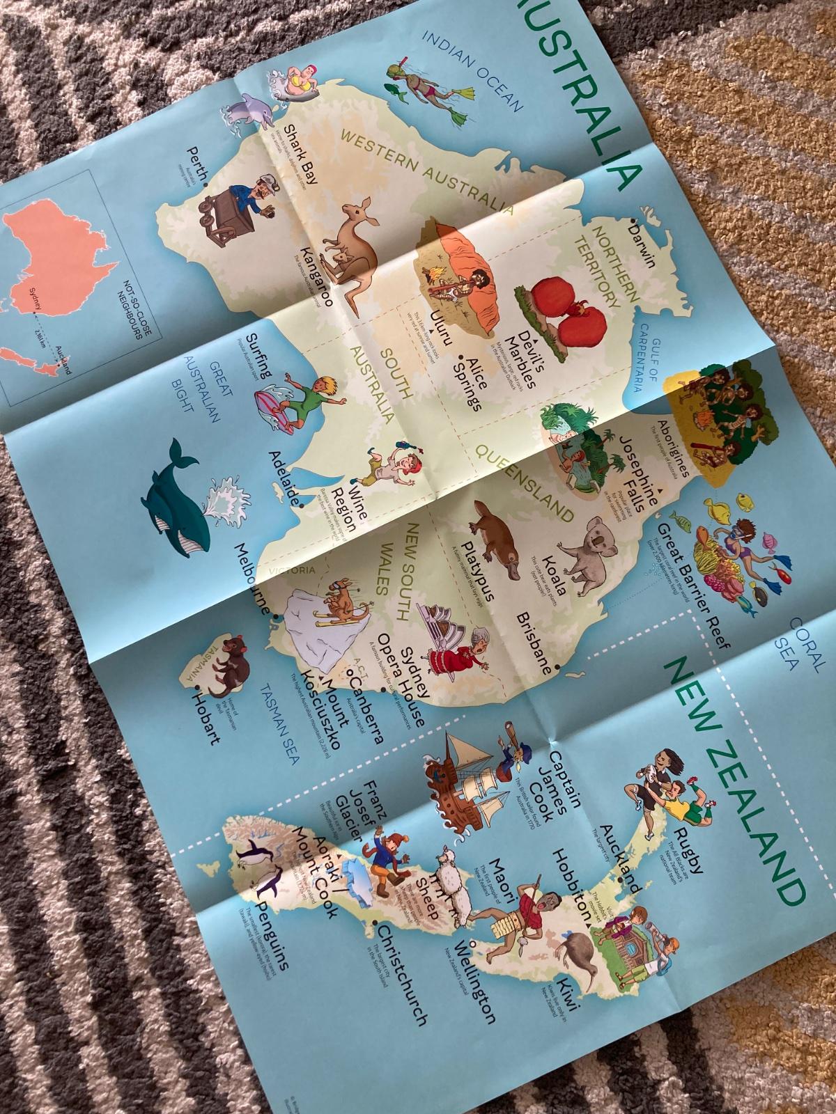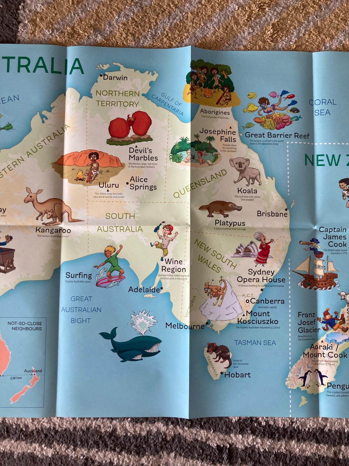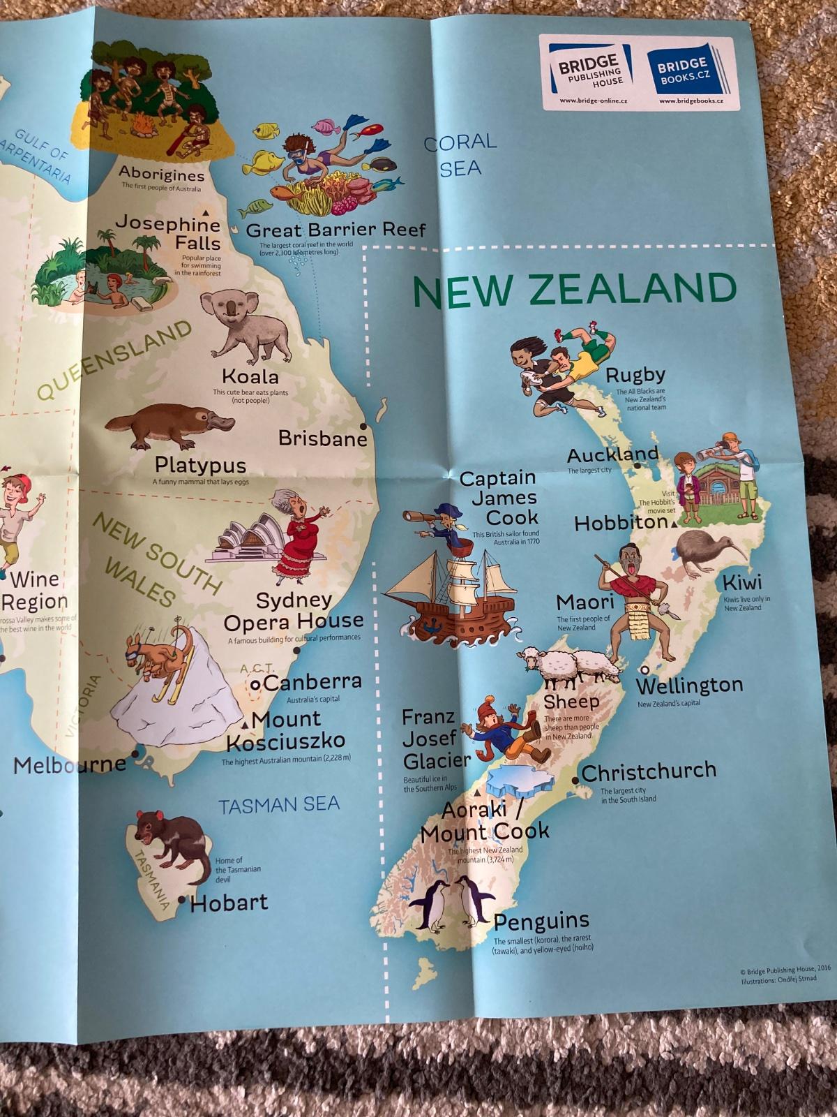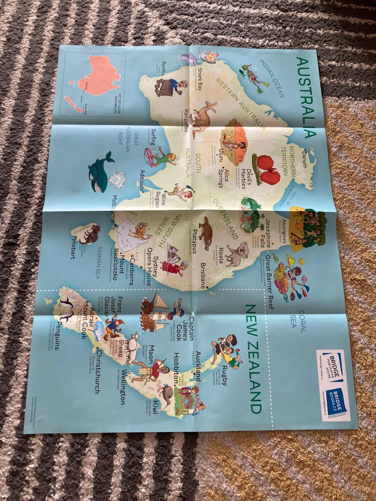 Veľká mapa Austrália/Nový Zéland pre deti