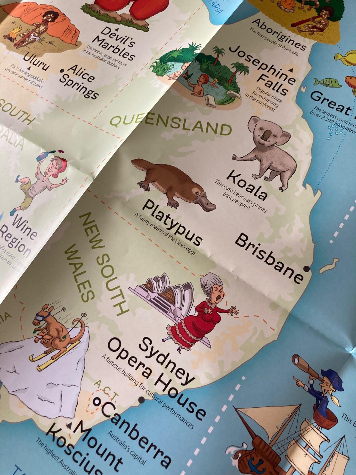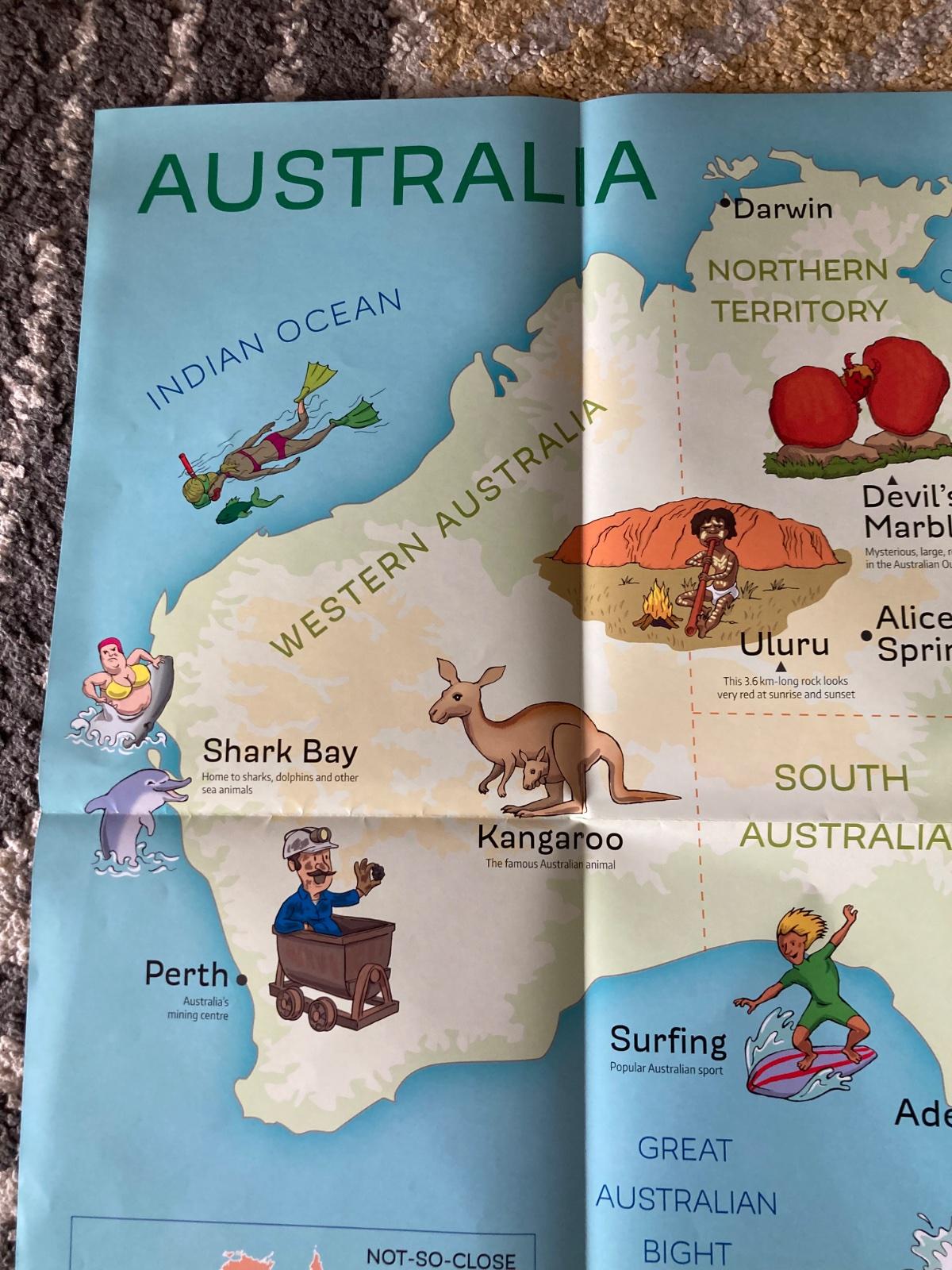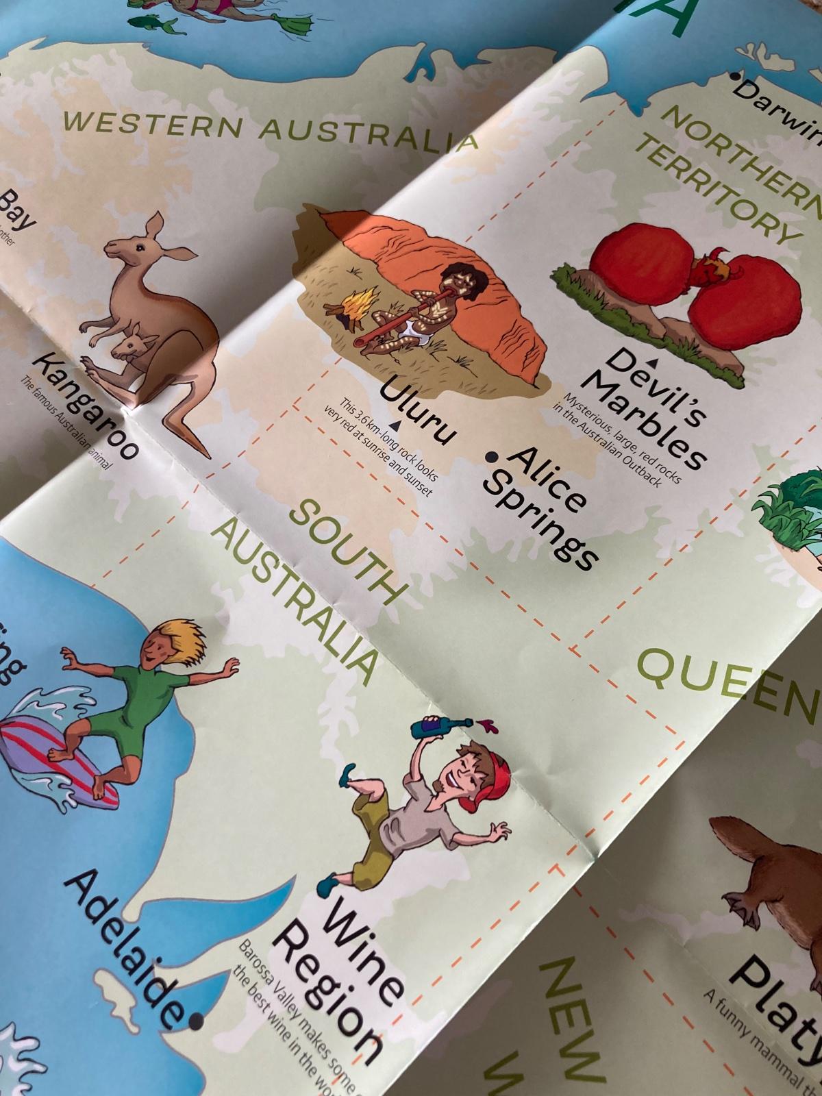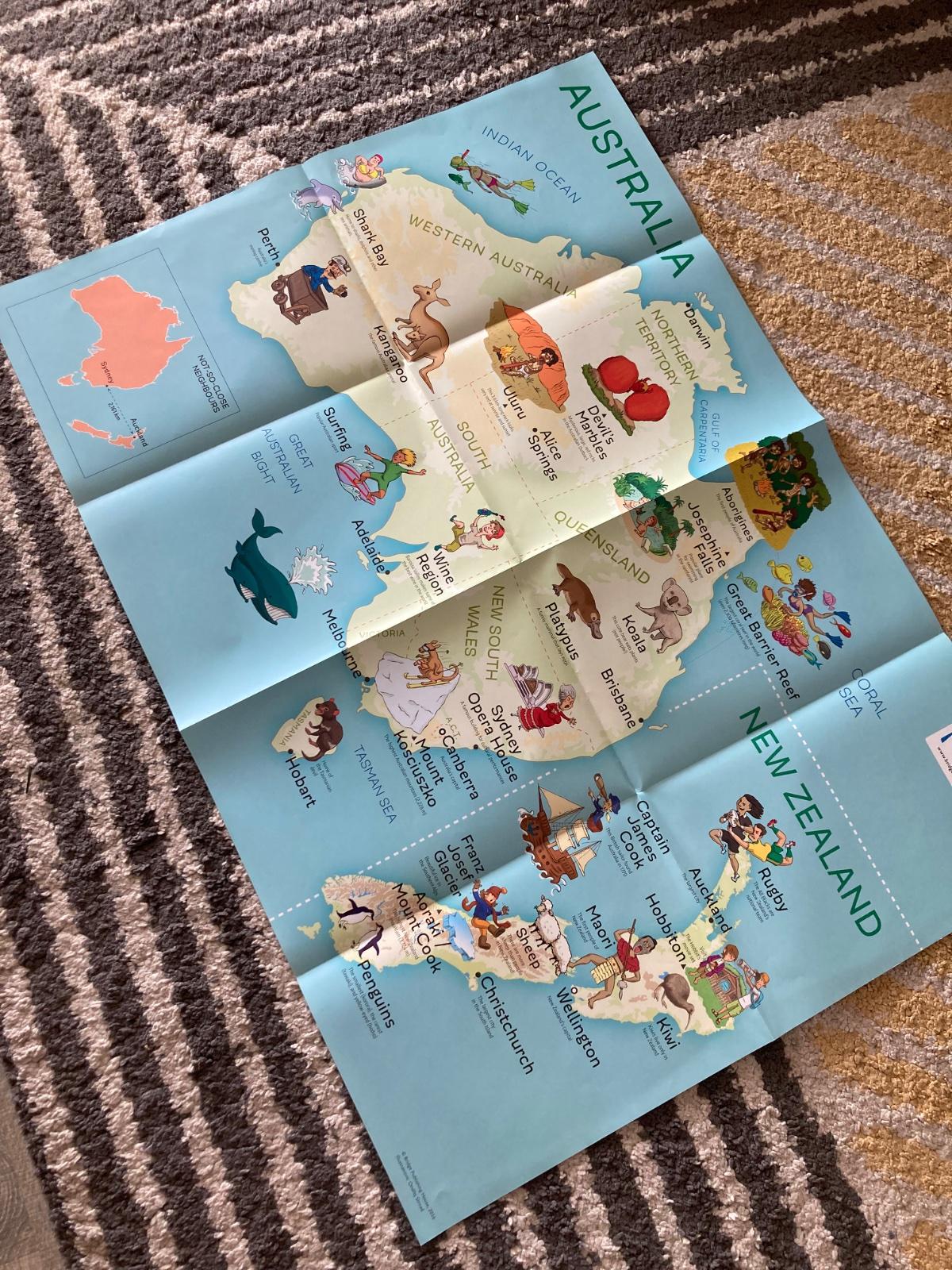 Veľká mapa Austrália/Nový Zéland pre deti