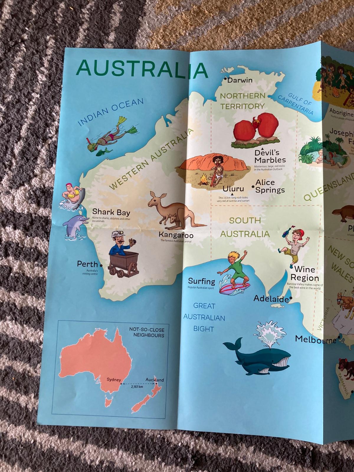 veľmi pekný stav, bez poškodení, zachovalé, s krásnymi ilustráciami a fotografiami, pekné strany aj obal, bez pečiatok, bez vyplnenia, bez vyfarbenia, anglický jazyk, mapa Austrálie