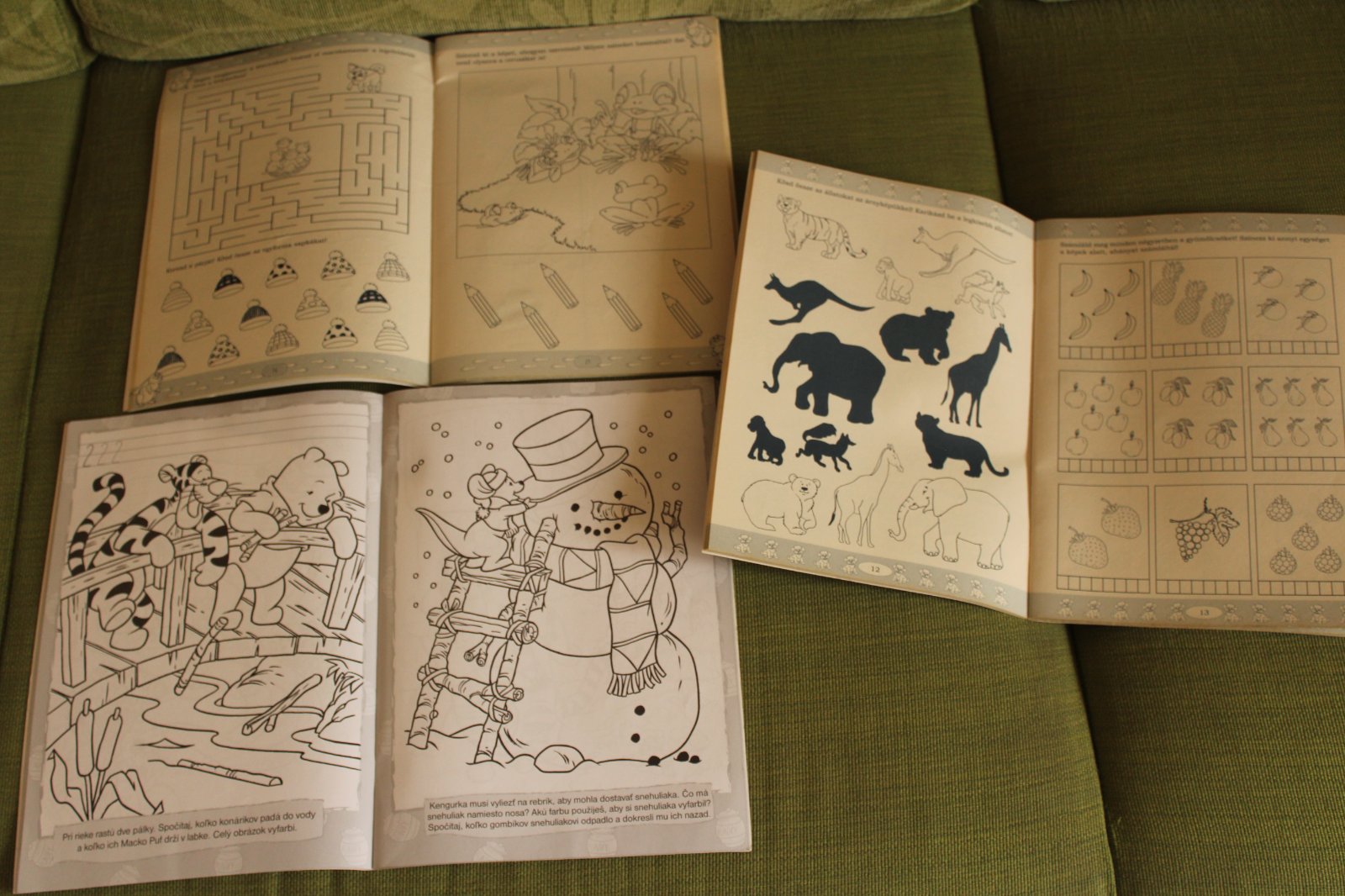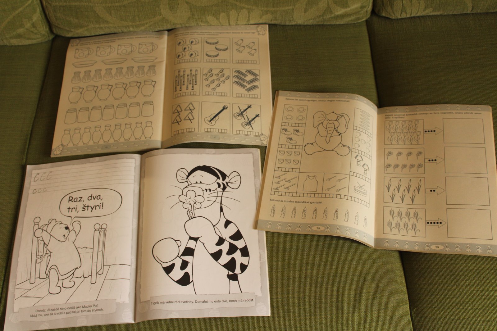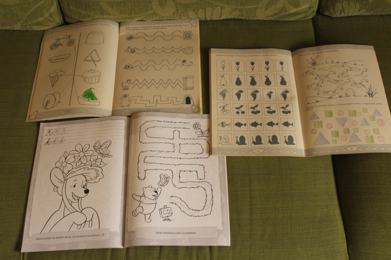 Vo veľmi dobrom, málo používanom stave. Niektoré len prelistované, iné len málo načaté. Niektoré majú aj nálepky a set obsahuje aj omaľovánky. Obsahujú veľa zaujímavých úloh pre rozvoj dieťaťa.