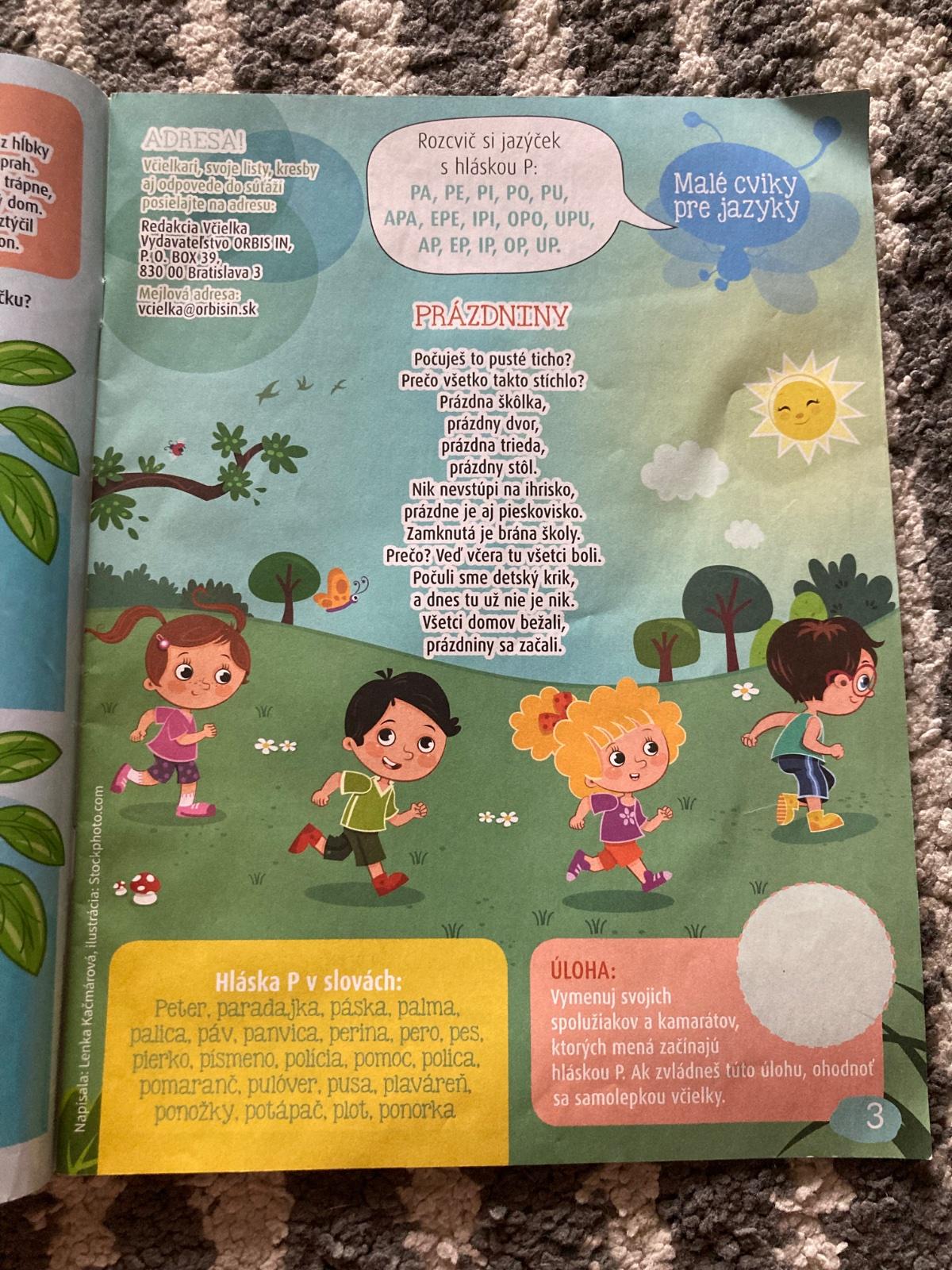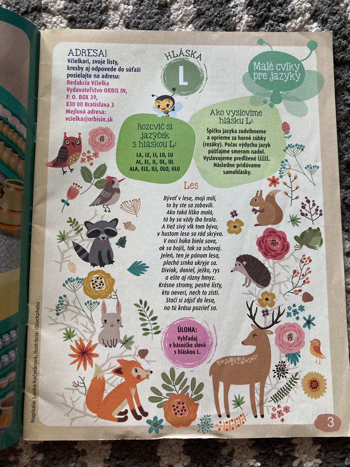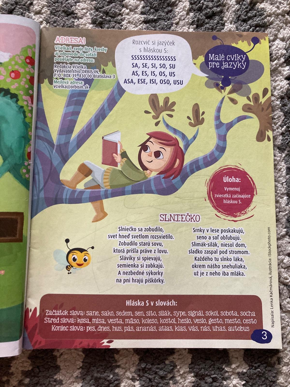 Včielka je obľúbený mesačník určený predovšetkým pre deti predškolského veku a mladším školákom. Vďaka pestrému obsahu a hravému spracovaniu pomáha deťom objavovať svet slov, príbehov, tvorivosti a učenia zábavnou formou.