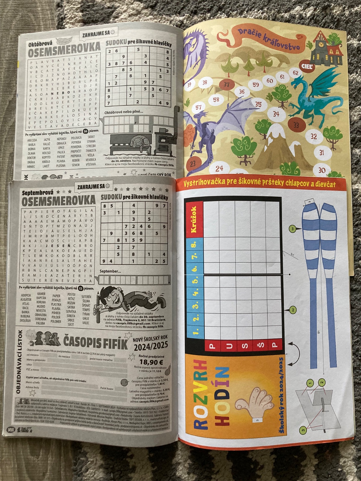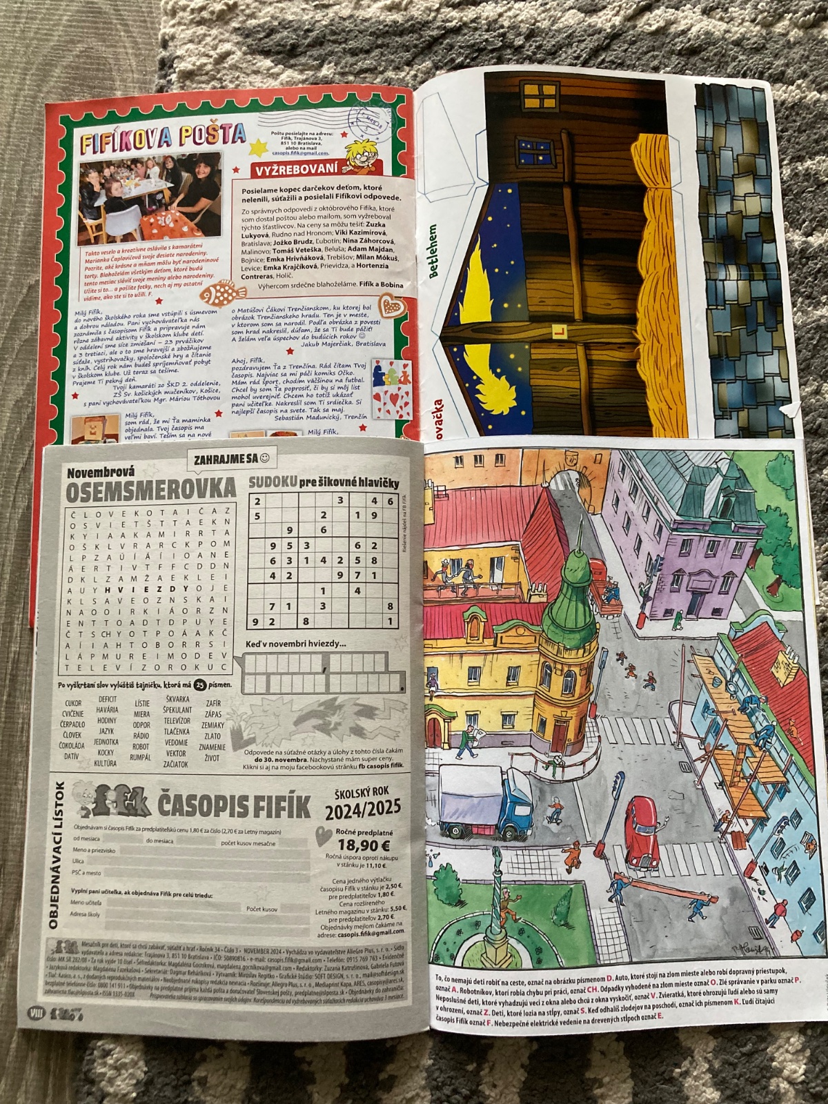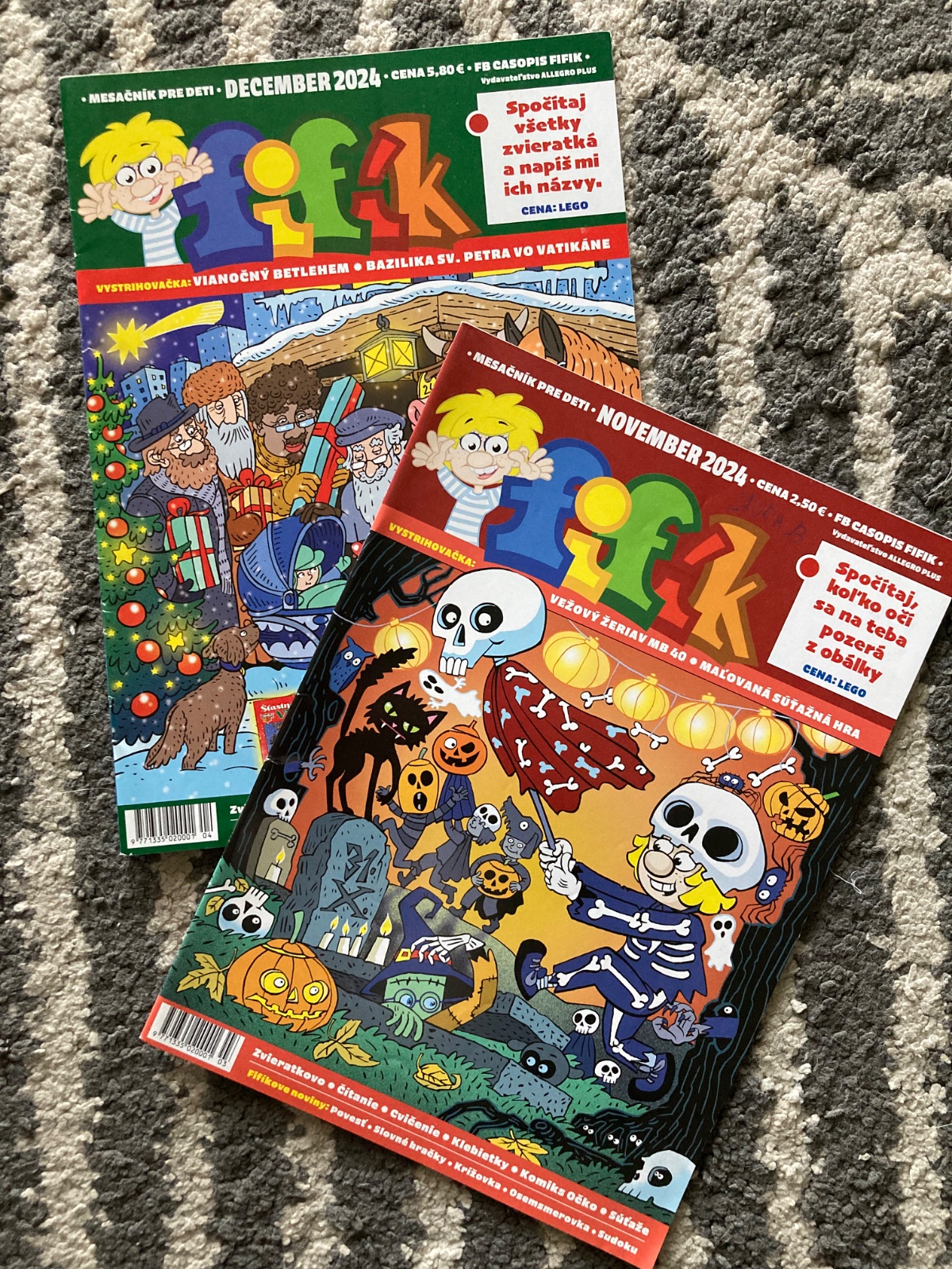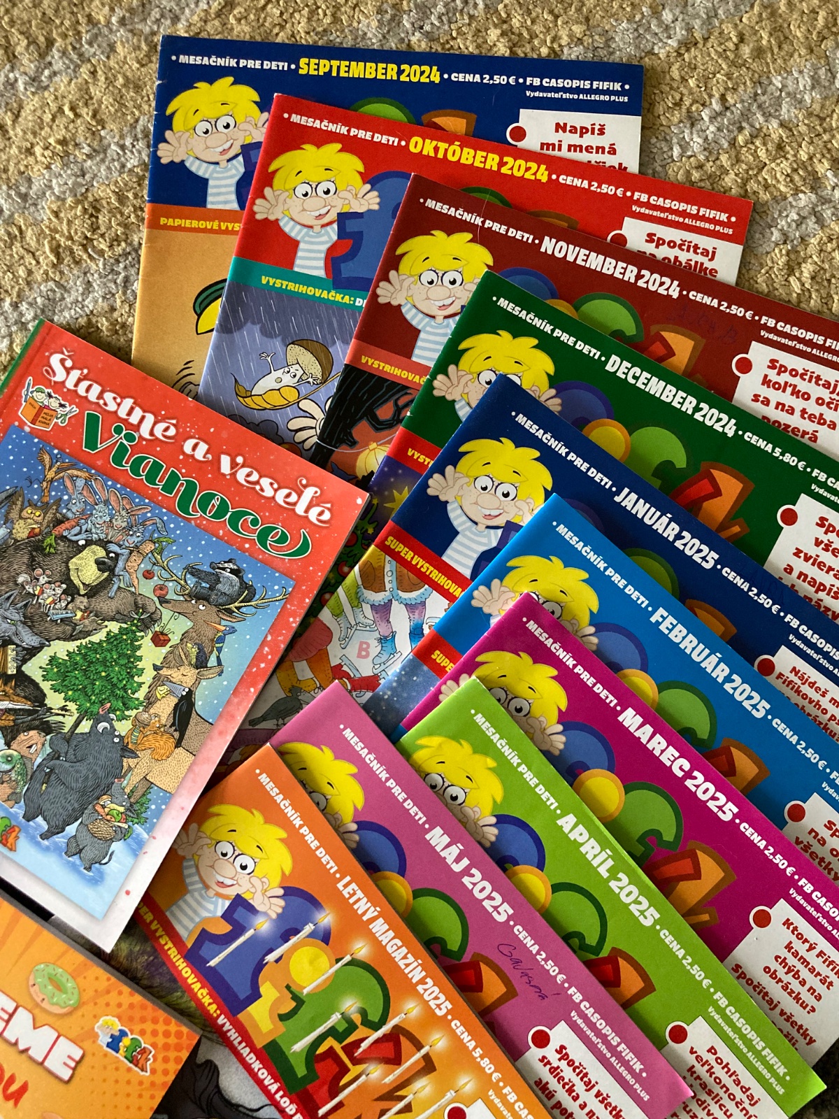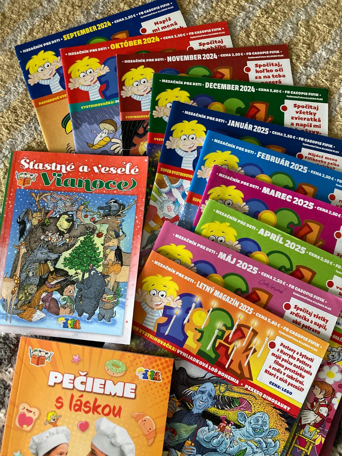veľmi pekný stav, časopis Fifík komplet celý školský rok 2024/2025, s krásnymi ilustráciami, pekné listy aj obal, bez pečiatok, veľmi málokedy vpis alebo vyplnenie, PC jedného 2,50eur, december s knižkou Vianoce PC 5,80eur plus knižka Pečieme s láskou