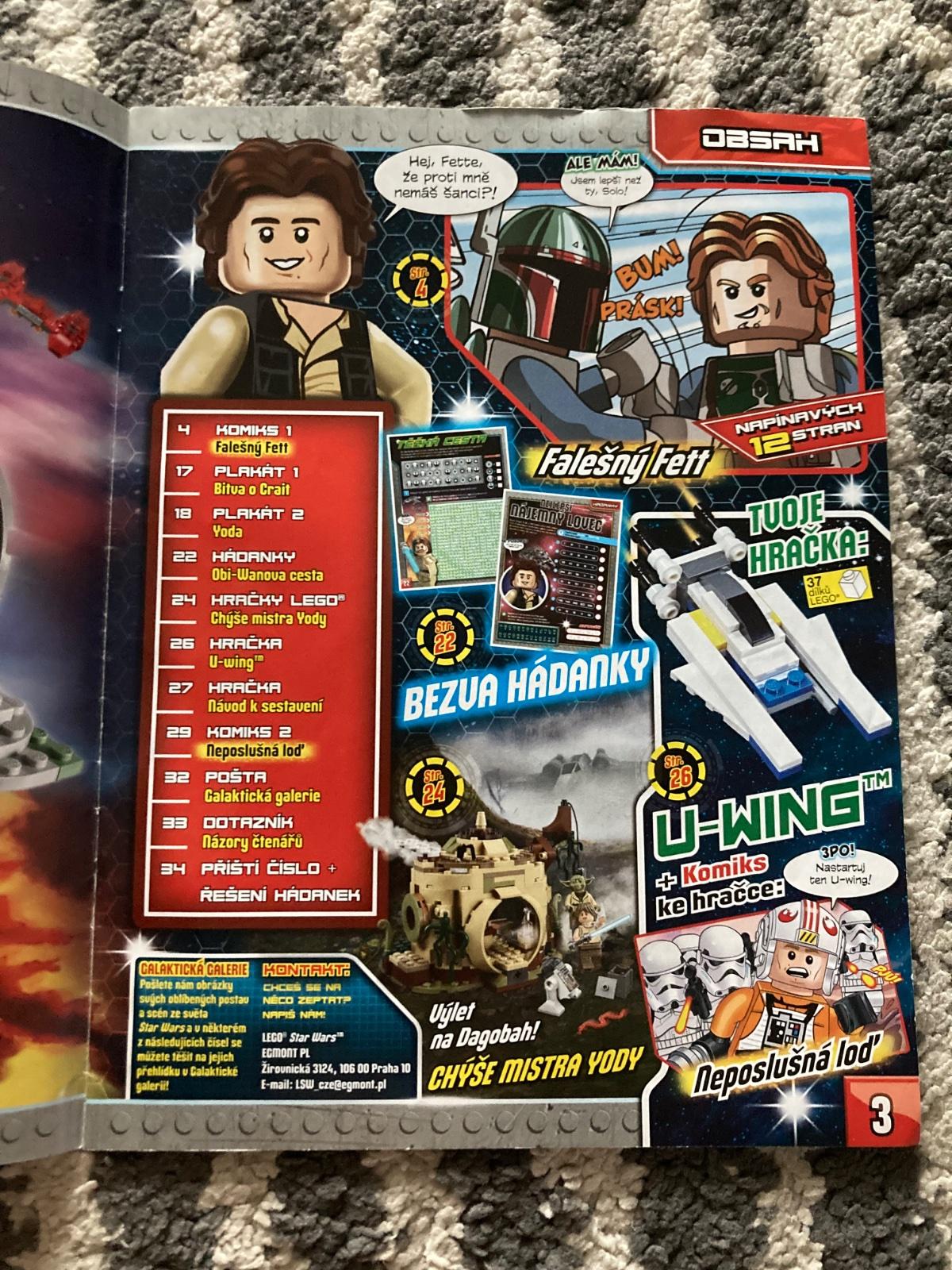 LEGO® STAR WARS™ je časopis určený dětem, které milují dobrodružství, hrdinské činy a legraci. Spolu s ním totiž vstupují do světa statečných ninjů, mocných Mistrů, dobra, ale i zla, s nímž je třeba skoncovat. Stránky provází spousta komiksů, kvízů, úkolů a také příběhů, které děti ve vteřině vtáhnou do děje. Vždy v něm také najdou překvapení, ať už skvělý plakát na stěnu, nebo postavičky z příběhů. Obsah: Komiks 1 - Falešný Fett, Plakát 1 - Bitva o Crait, Plagát 2 - Yoda, Hádanky - Obi-Wanova cesta, Hračky LEGO - Chíše mistra Yody, Hračka - U-wing, Hračka - Návod k sestavení, Komiks 2 - Neposlušná loď, Pošta - Galaktická galerie, Dotazník - názory čtenářů.