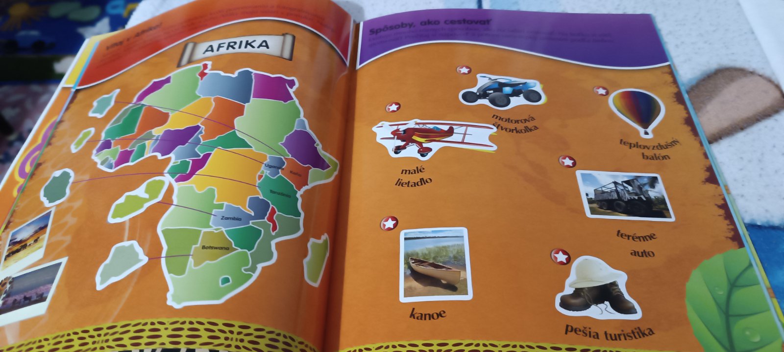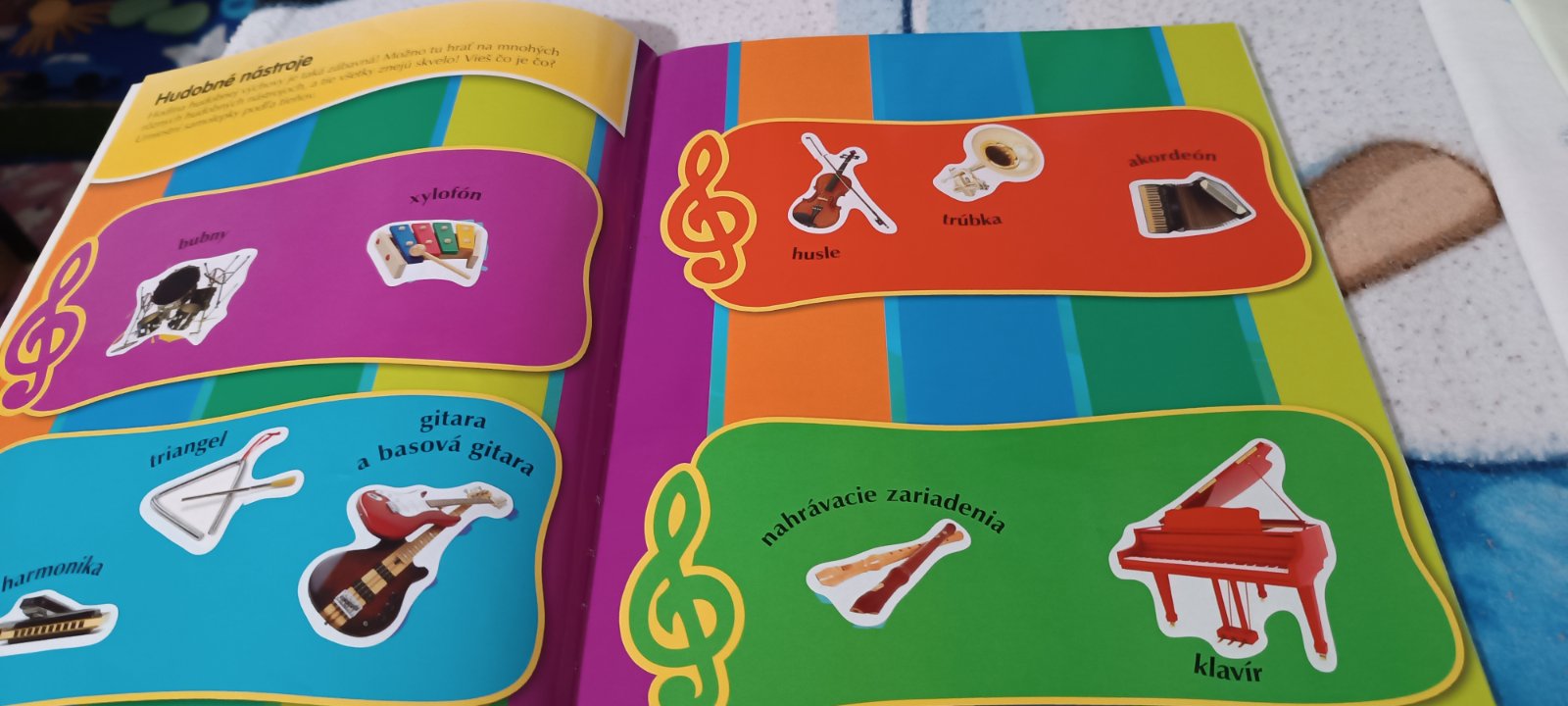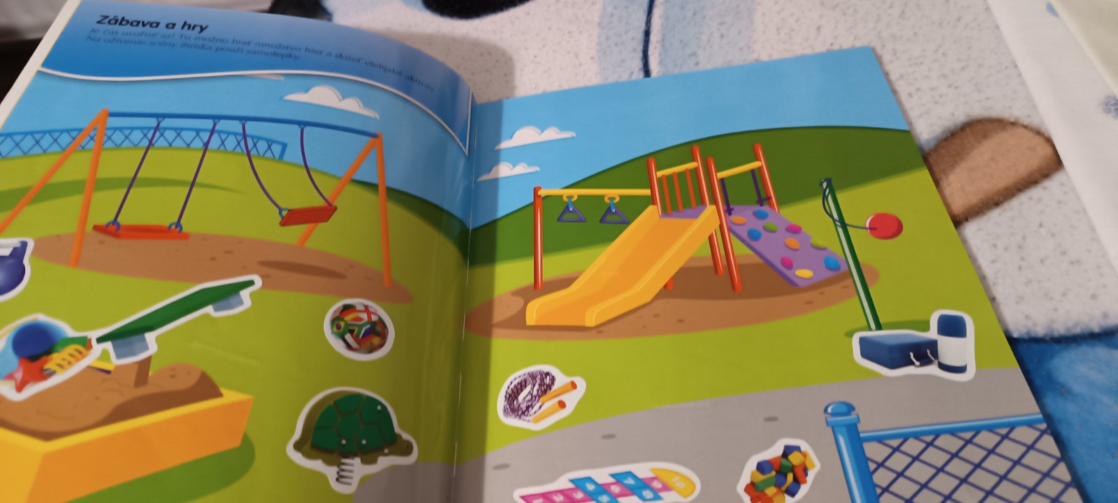 Nálepky nalepené, určené na učenie slov pomocou obrázkov.
