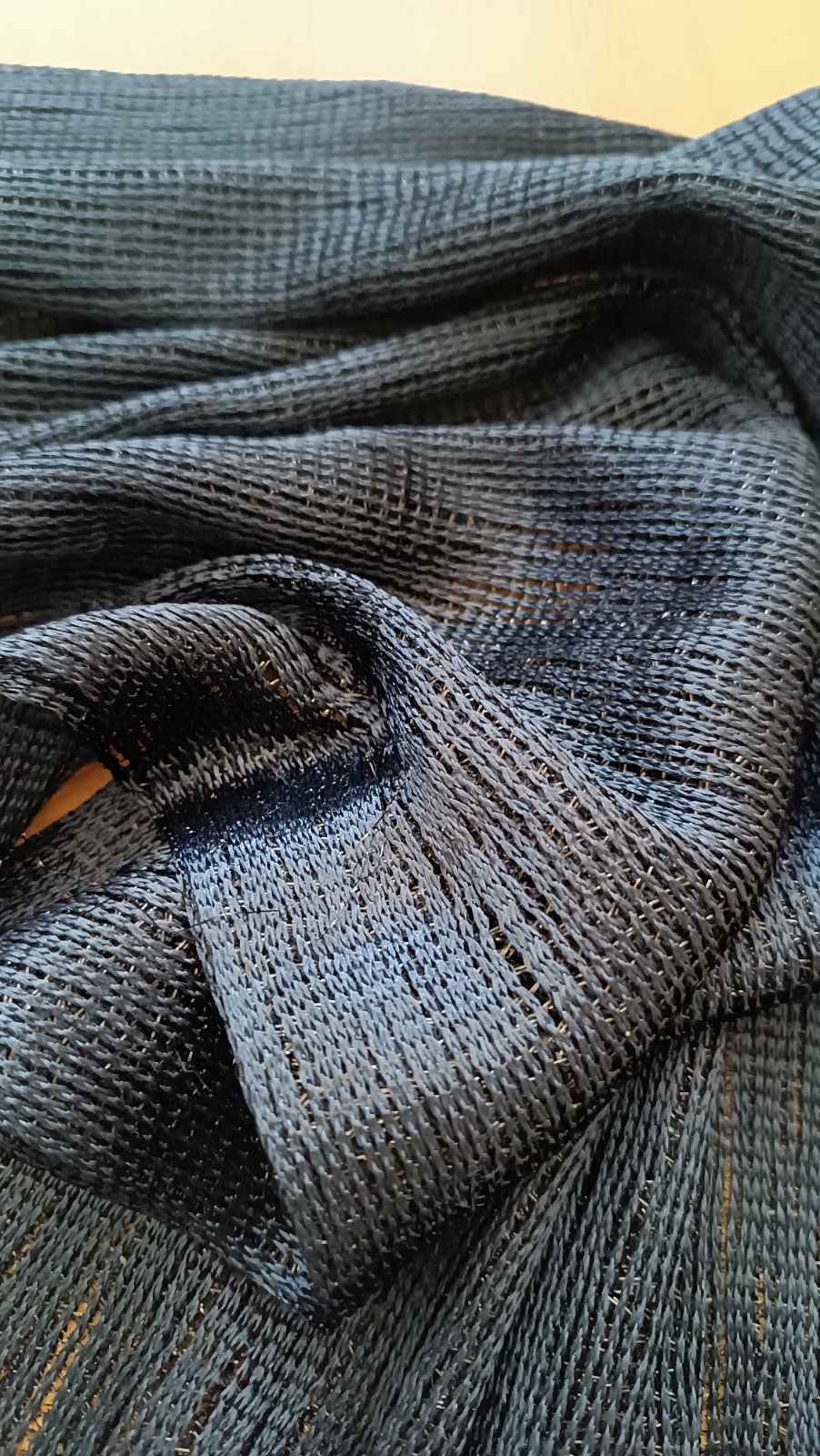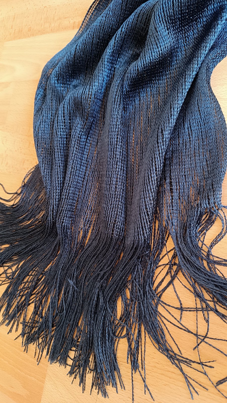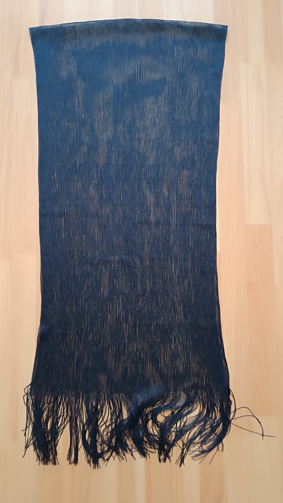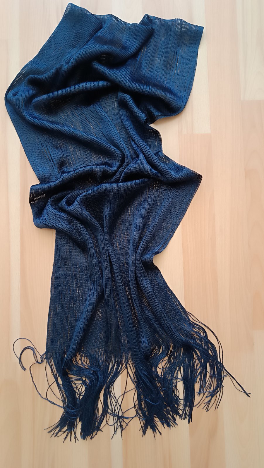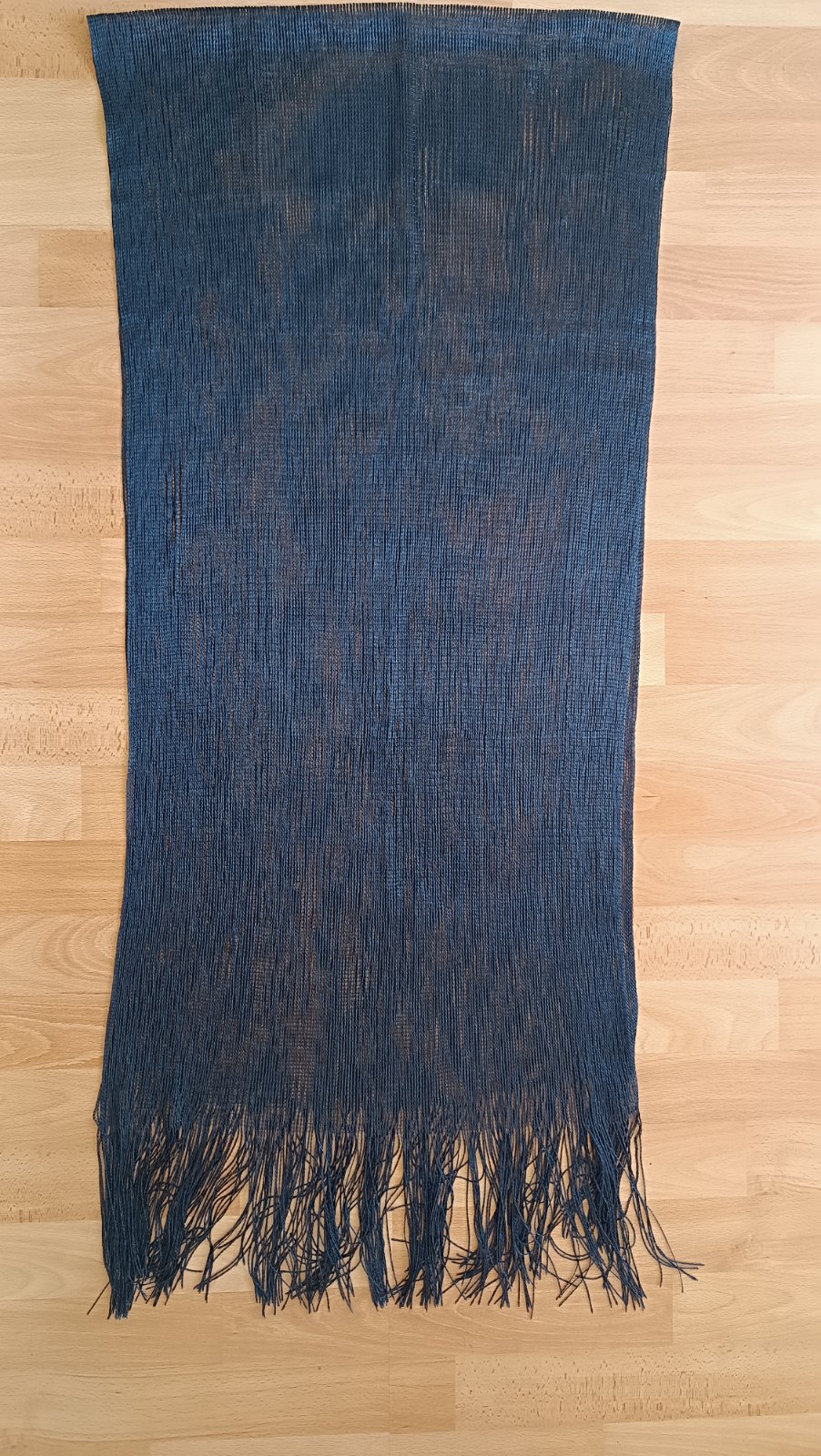 Metalický šál vhodný na slávnostnú príležitosť, šírka 44cm, dĺžka 215 cm, lesklé metalické vlákno, tmavomodrý, raz použitý na prehoz na plecia na šaty, pôvodná cena 25€