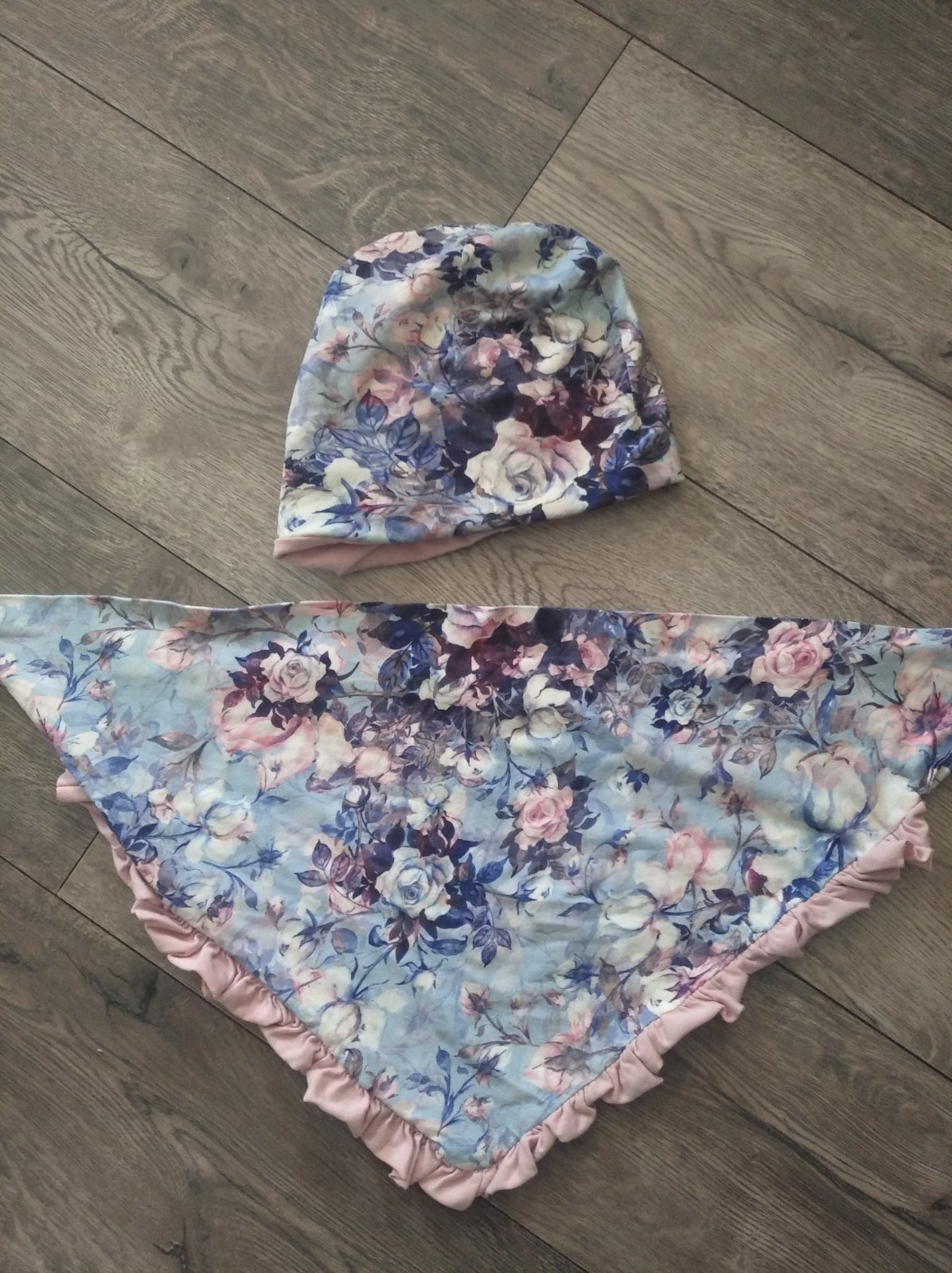 Predam jarnu supravicku - ciapka a nakrcnik. Robena na objednavku. Ciapka ma abvod 47-49 cm, tak na 4-6 rocne dievcatko. Nakrcnik je na jedno otocenie. Cena je za cely komplet.
