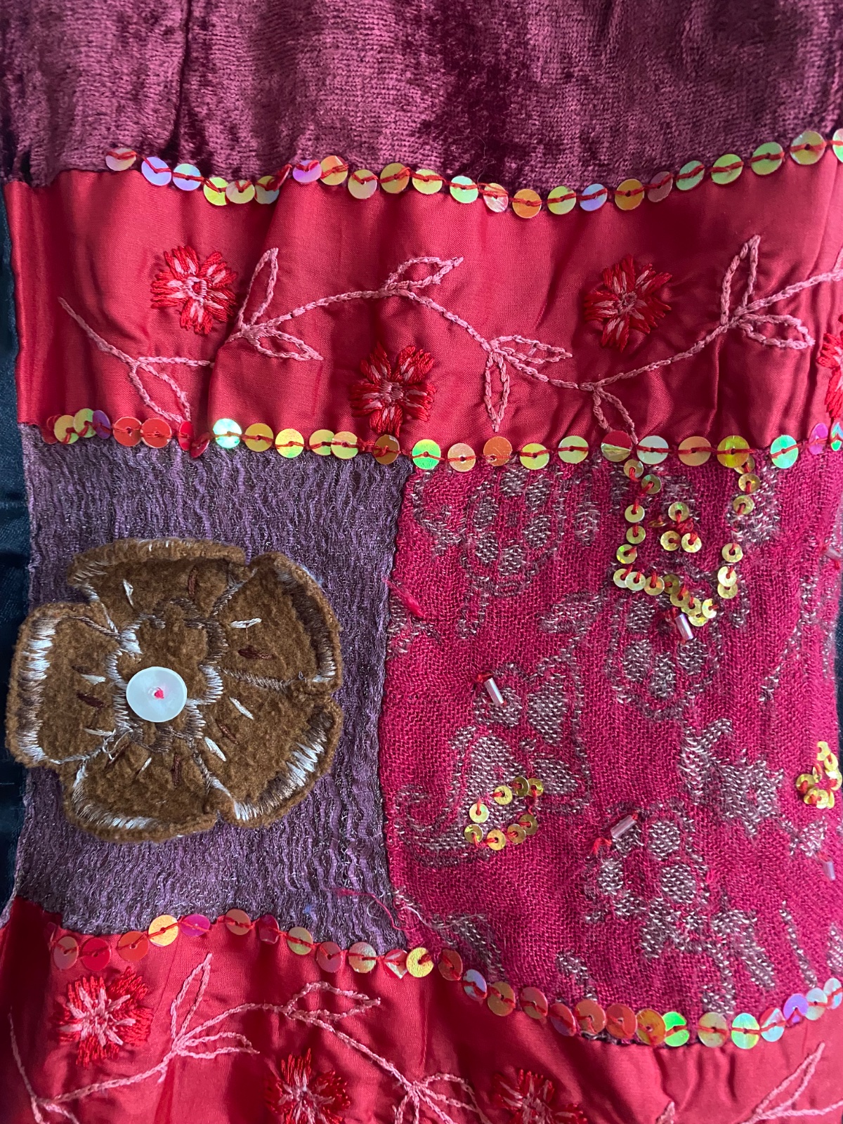 Červeno, ružovo čierny zamatový šál s krásnou kvetovou solikáciou.