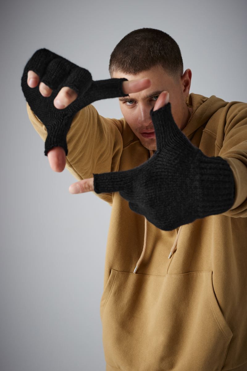 Bezprstové pletené rukavice s rebrovanými manžetami.