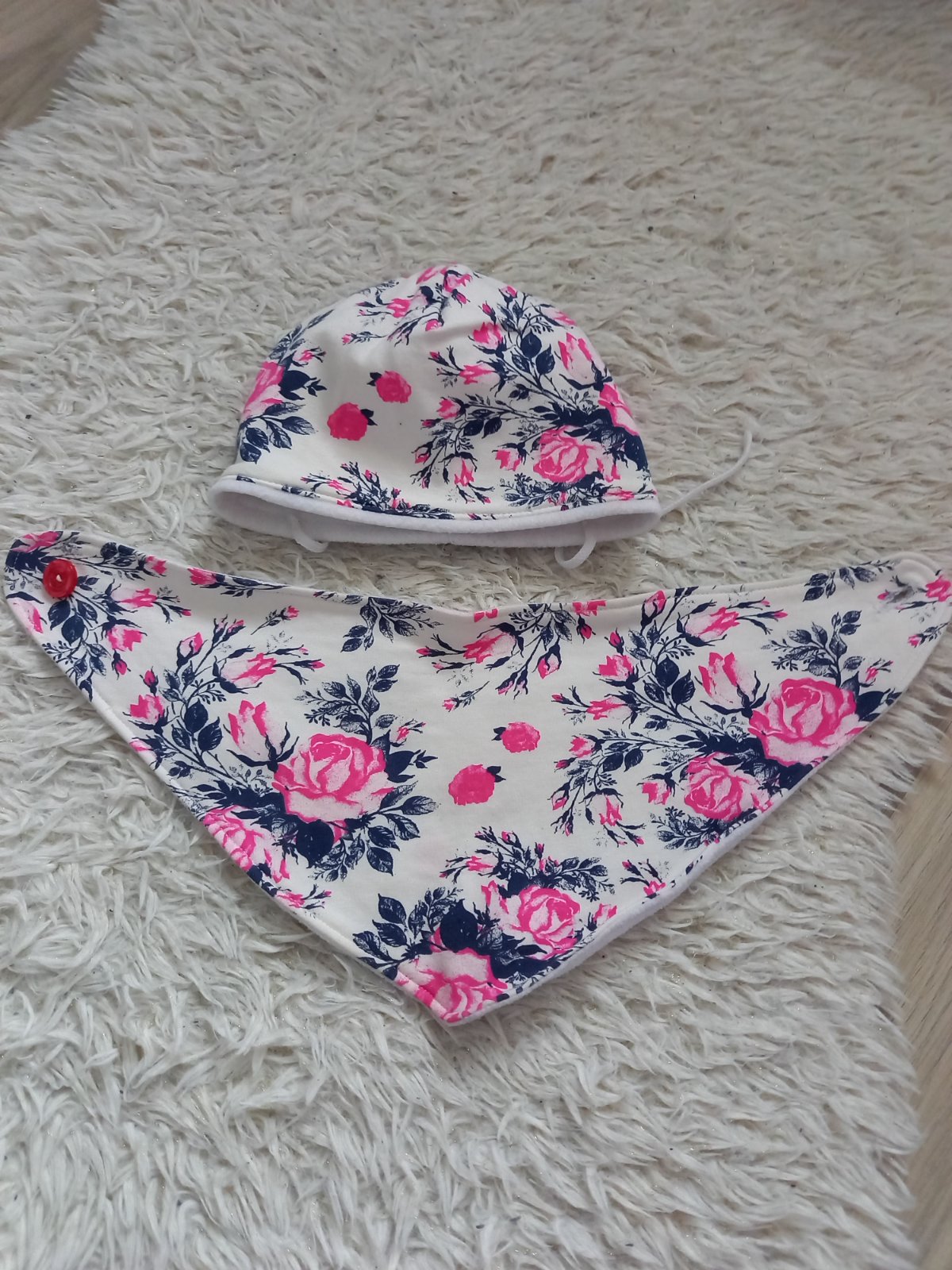 Krásny set, handmade. Podšitý fleecom. Super stav, bez poškodenia. Veľ. 68/74.