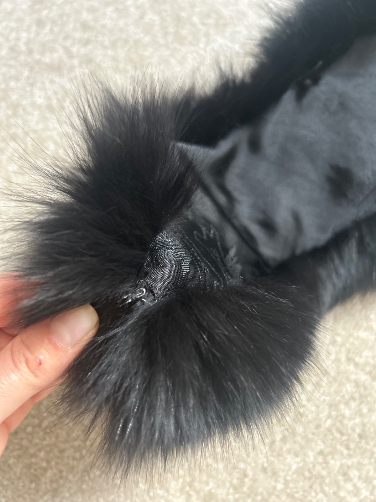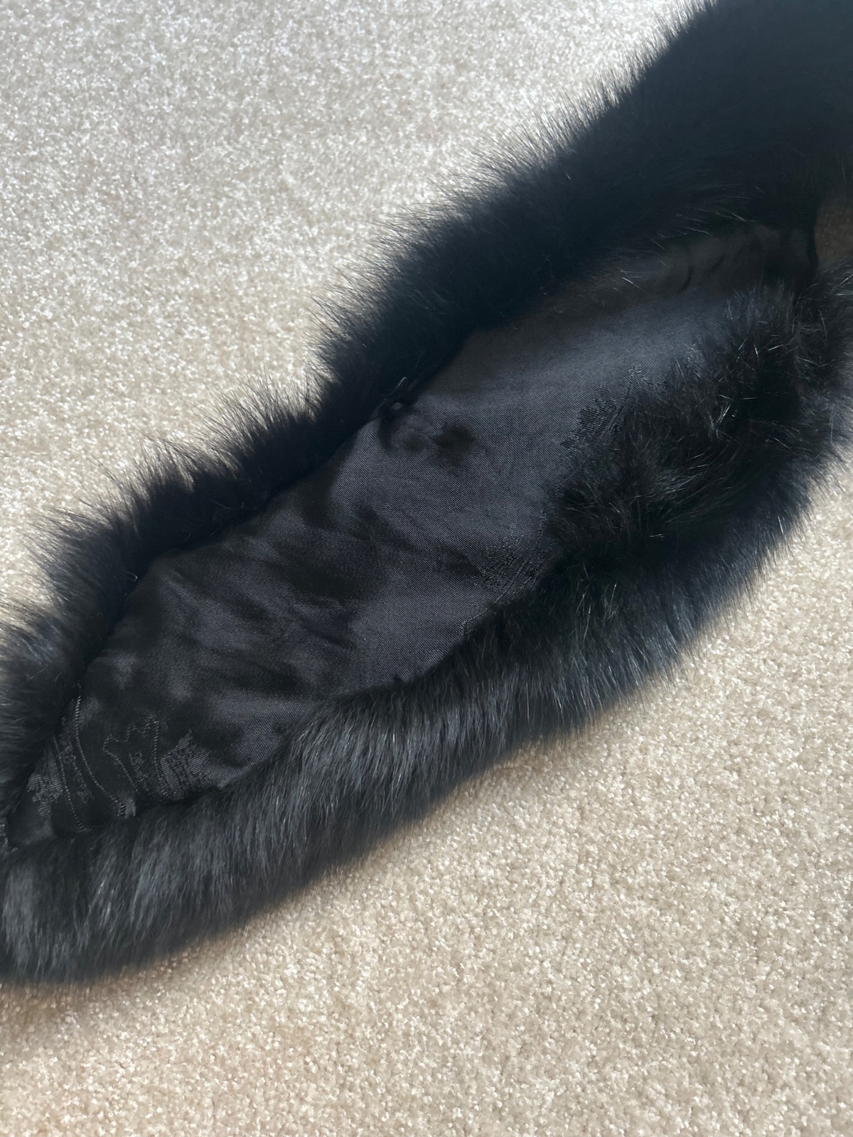 Pravá kožušina ušitá na kabát, sako, podšitá saténom s putkami na pripevnenie na kabát a spojená zapínaním, pravá líška