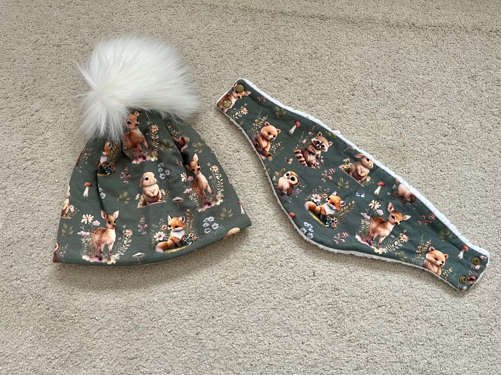 Predam jarnu supravicku - ciapka a nakrcnik. Robena na objednavku. Ciapka ma abvod 47-49 cm, tak na 4-6 rocne dievcatko. Nakrcnik je na jedno otocenie. Cena je za cely komplet.