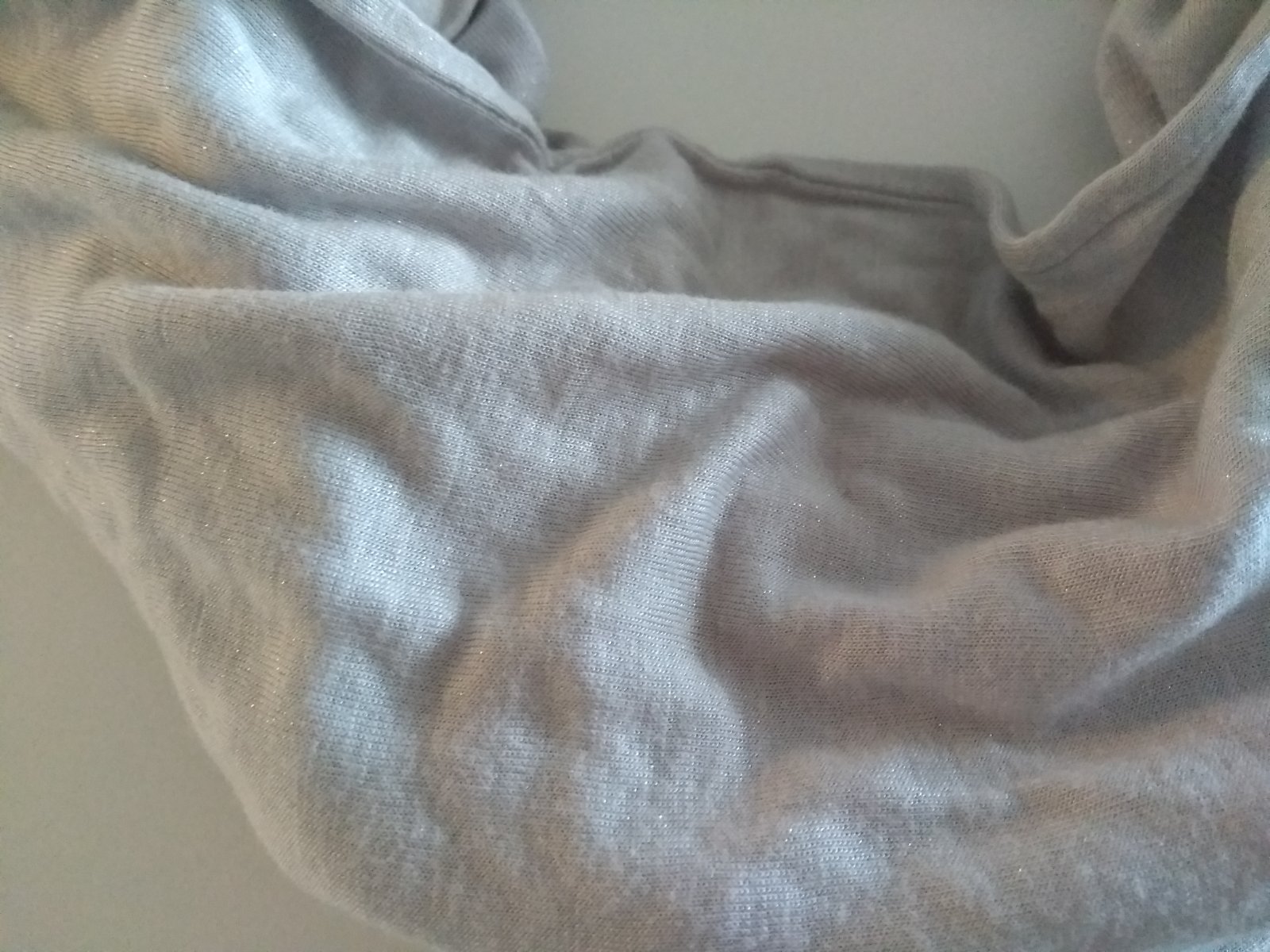 Kruhovy sal s dlzkou 2x 85cm. Sivy s jemnymi striebornymi nitami