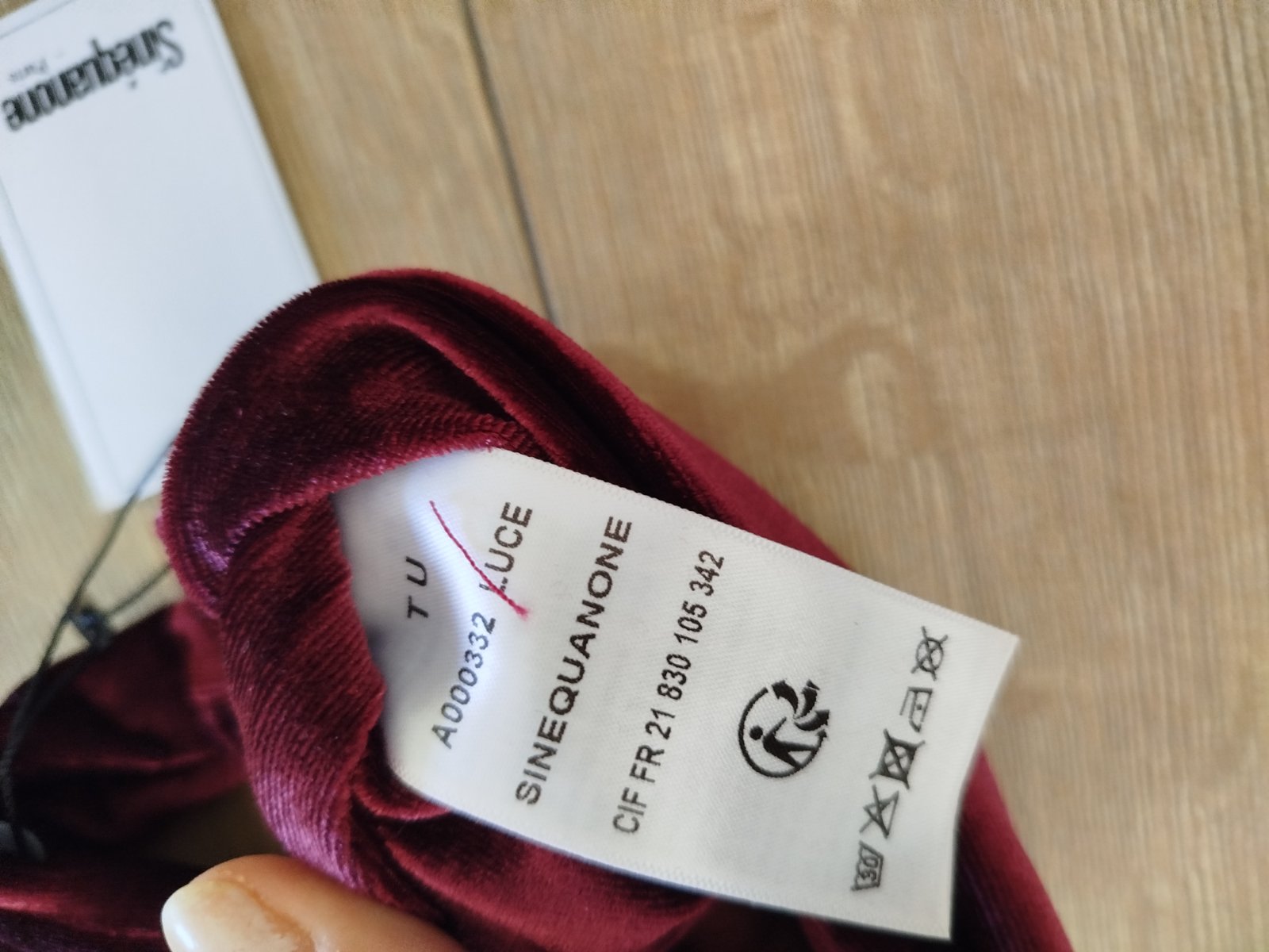 Predám úplne novú a elegantnú čelenku značky Sinequanone Paris s visačkou. Táto krásna čelenka v luxusnej bordó farbe je vyrobená z jemného zamatu, ktorý jej dodáva sofistikovaný vzhľad a príjemný pocit na dotyk.