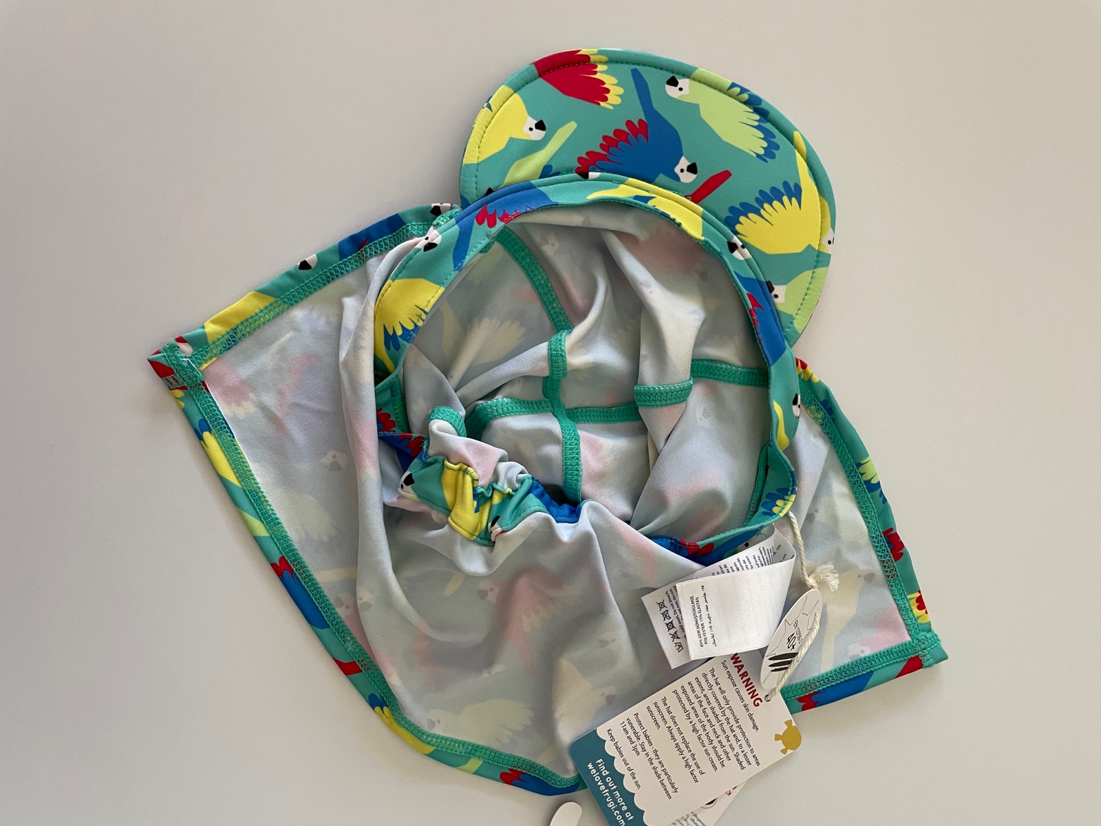 Krásna, veľmi kvalitná, posúvam novú, nenosenú, vysoko účinná ochrana pred slnečným žiarením, UV 40+, uvedená veľkosť 2-4 roky, je dosť veľká , uvedená 52 cm vďaka gumičkám má voľu do 54 cm bez tlačenia