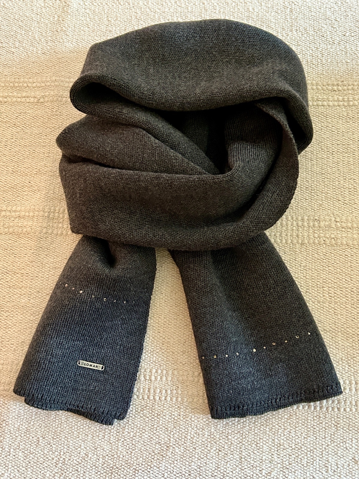 Predám šál s podielom vlny zn.LOMAN, veľmi príjemný na telo. Na koncoch má ozdobné kamienky. Elegantná sivá farba. Šál je unisex, vhodný aj ako dar, pre ženu, aj muža. Rozmer: 30x180 cm. Materiál 100% vlna, príjemný na telo. BA alebo poštou+poštovné.