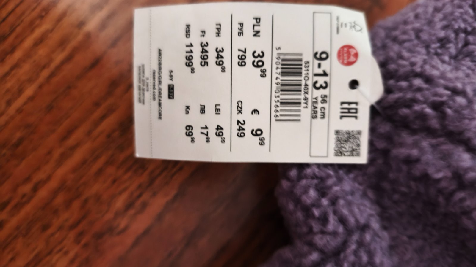 Bez poškodení a fľakov, veľkosť píšu 9-13rokov, obvod na 56cm má na štítku.