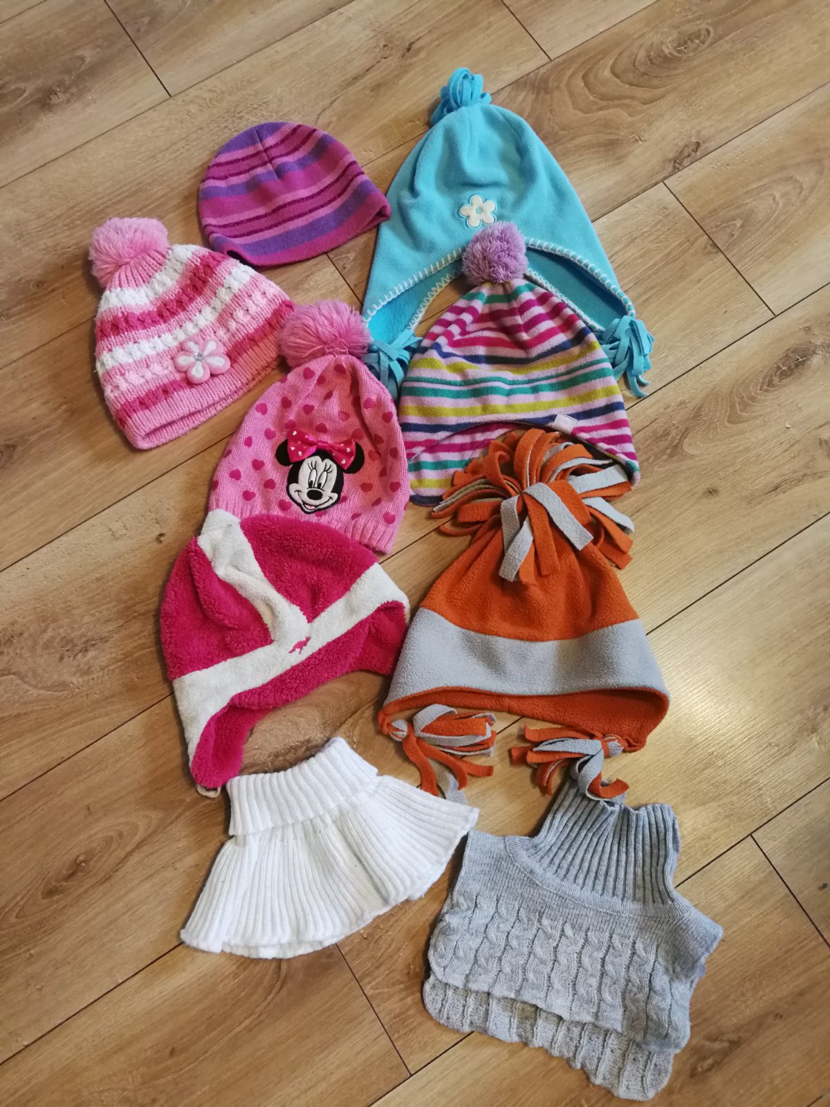 Rôzne značky ( Benetton, Rada....) čiapky všetky teplučke a dobre nositelné. K nim pridávam dva obľúbené nakrčniky zdarma. Cena spolu