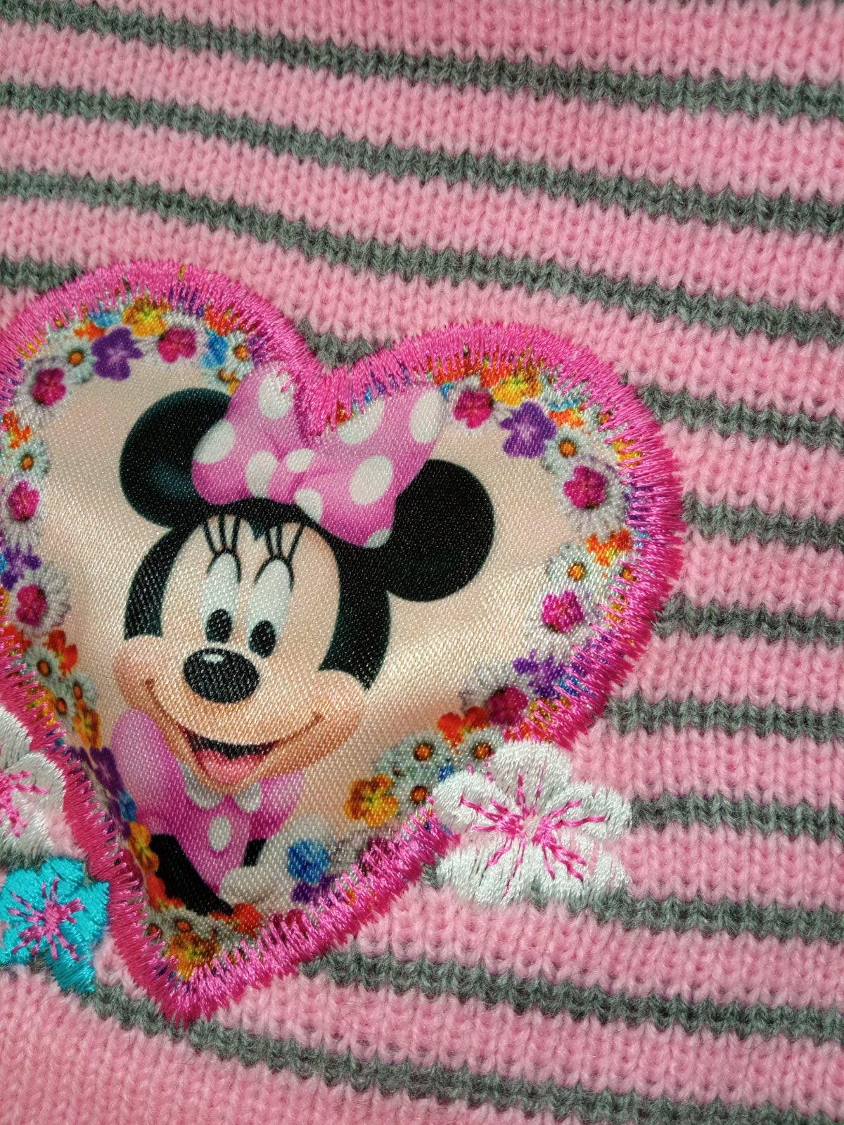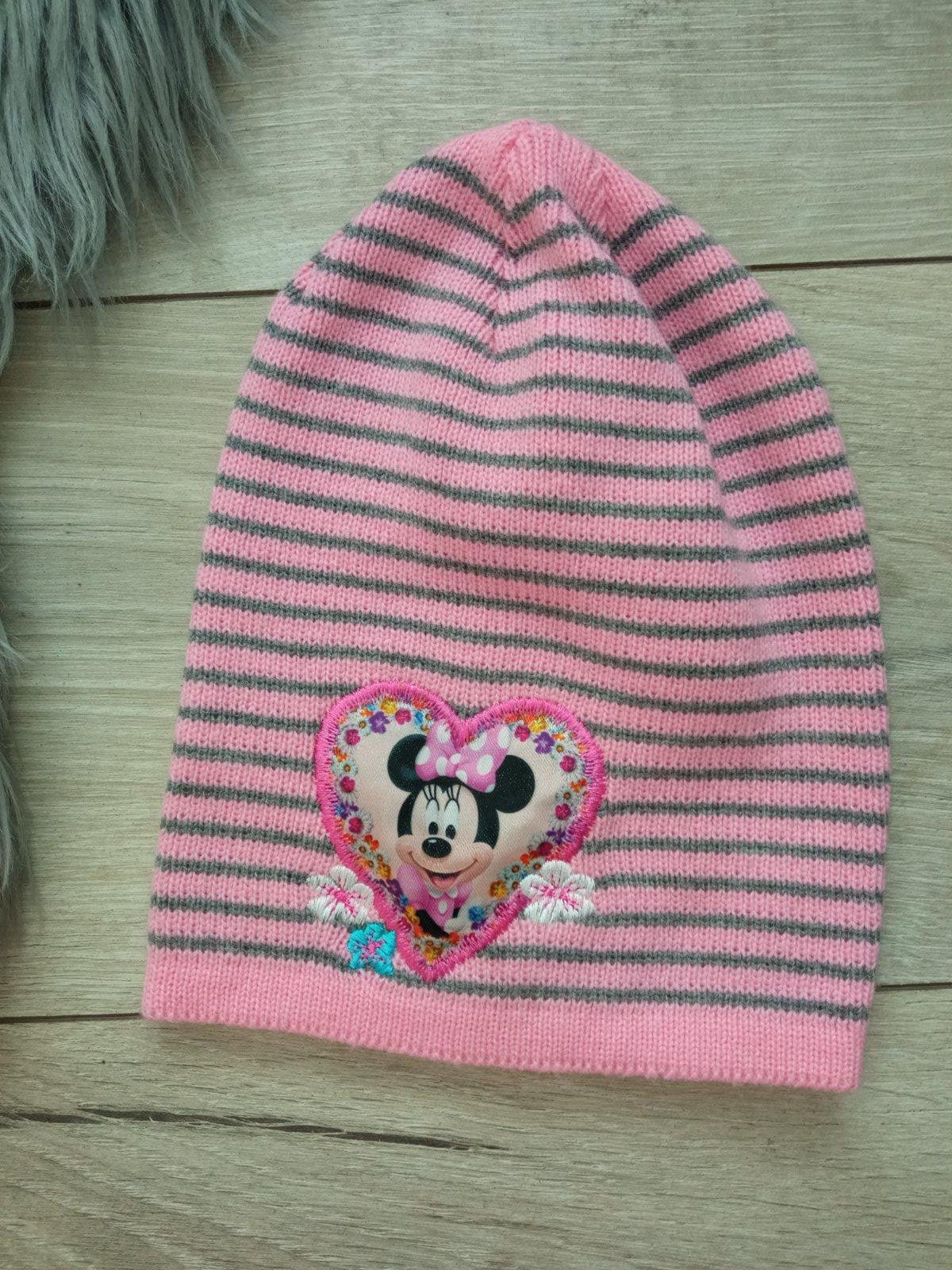 Dievčenská pásikavá prechodná čiapka Minnie, veľkosť cca 104, elastická.
